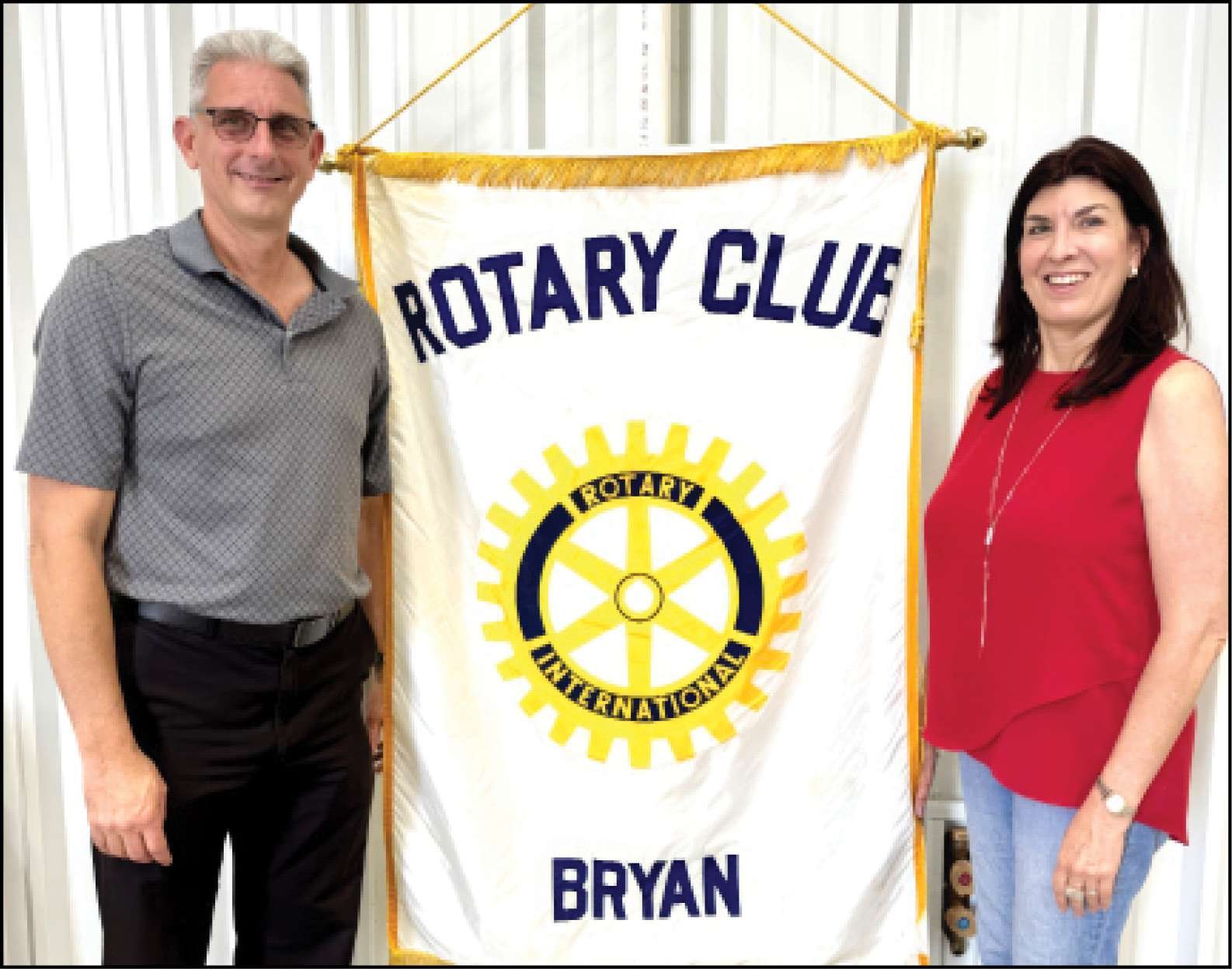 AIRPORT VISIT … The Bryan Rotary Club went on the road to the Williams County Regional Airport for their weekly meeting. Manager of Operations, Brent Wilson shared an overview of the activities of the airport. Wilson has been flying for twenty years and holds an Airline Transport Pilot Certification and flies three jets and a twin Cessna Aircraft. The airport was built in 1964 when Governor James Rhodes declared that every county in Ohio should have an airport. Williams County is a regional airport because it has the largest runway between Toledo and Fort Wayne. This brings in more income. The new enlarged hanger is two years old with offices and a pilot’s lounge. Last year the estimated economic impact of the airport to the area was 4.9 million dollars with approximately 4,000 landings and take offs. Pictured is speaker Brent Wilson and Rotarian Jenny Horn.