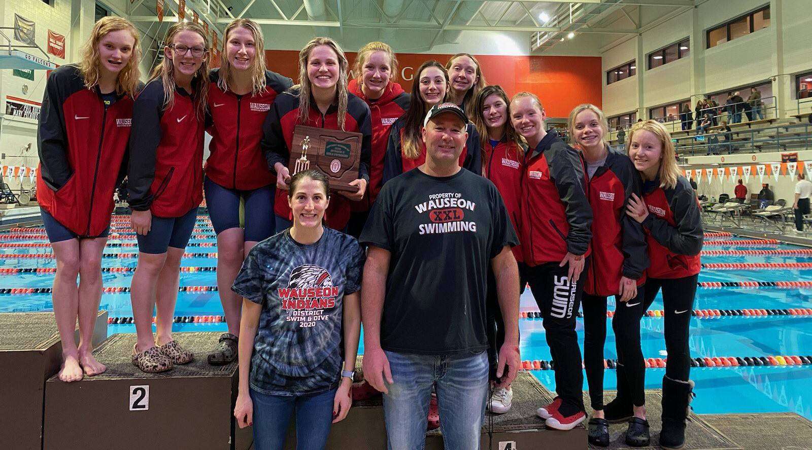 The competition began on February 12th with diving where Bryan’s Taylor Peters finished as District Runner-Up to advance to Canton with 441.65 points. Cameron Estep was the top placer for Wauseon coming home in 16th with 279.00 points. Aiden Andrews of Bryan was 16th on the boys’ side with 261.65 points.
