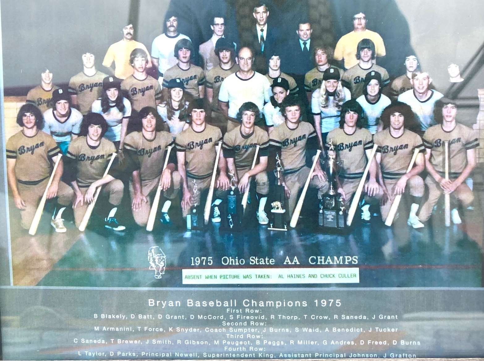 LOOKING BACK … This was a team photo located on the display table and taken following the 1975 baseball season in which Bryan High School had captured the Class AA State Baseball Championship. In the photo, Golden Bears head coach Ray Sumpter is in the middle of the second row.