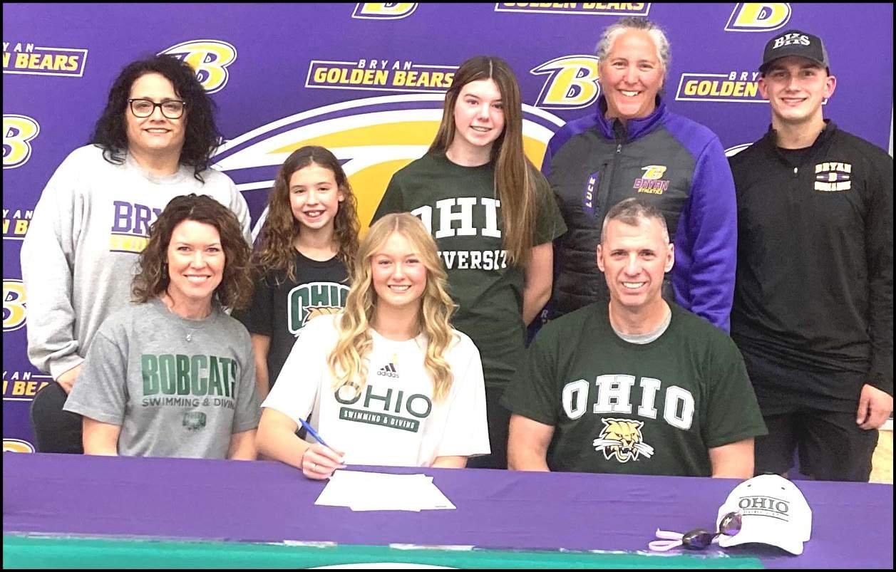 Nora Kunsman, a senior standout on the Bryan girls swim team, who came off a pair of runner-up finishes in the Division II state girls swim meet this past year, signed her letter of intent to Ohio University, where she will be a member of the Lady Bobcats swim team.