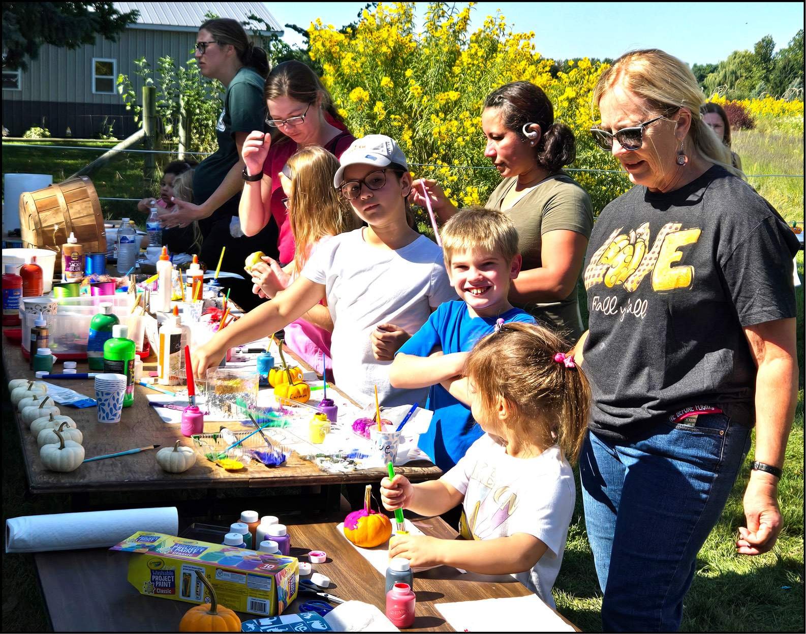 KID TIME … Children complete craft projects at Johnston Fruit Farms during their Apples for Everyone event on Saturday.