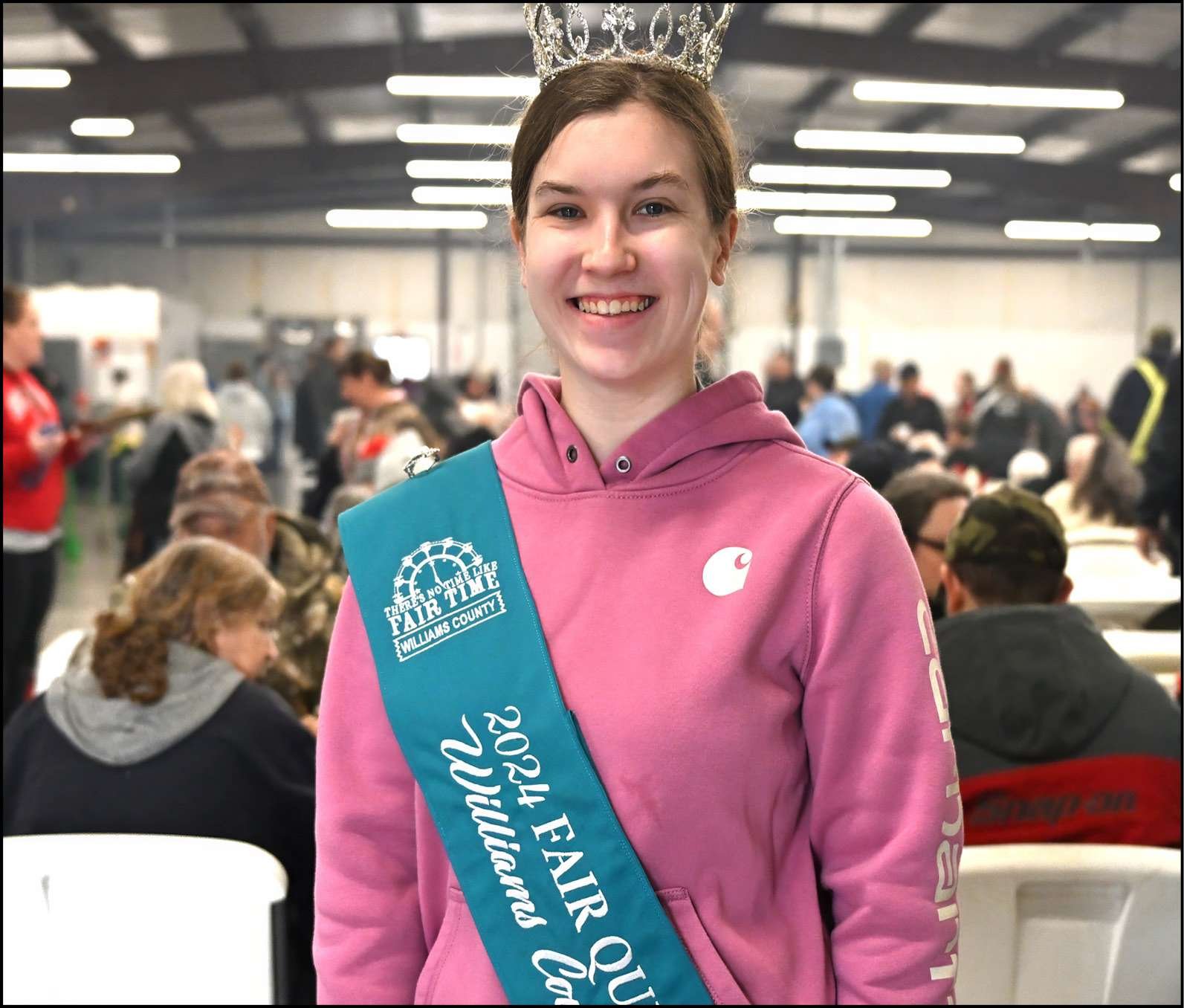 FAIR QUEEN… 2024 Williams County Fair Queen Ingrid Hoffman welcomes guests to the pancake and sausage breakfast.