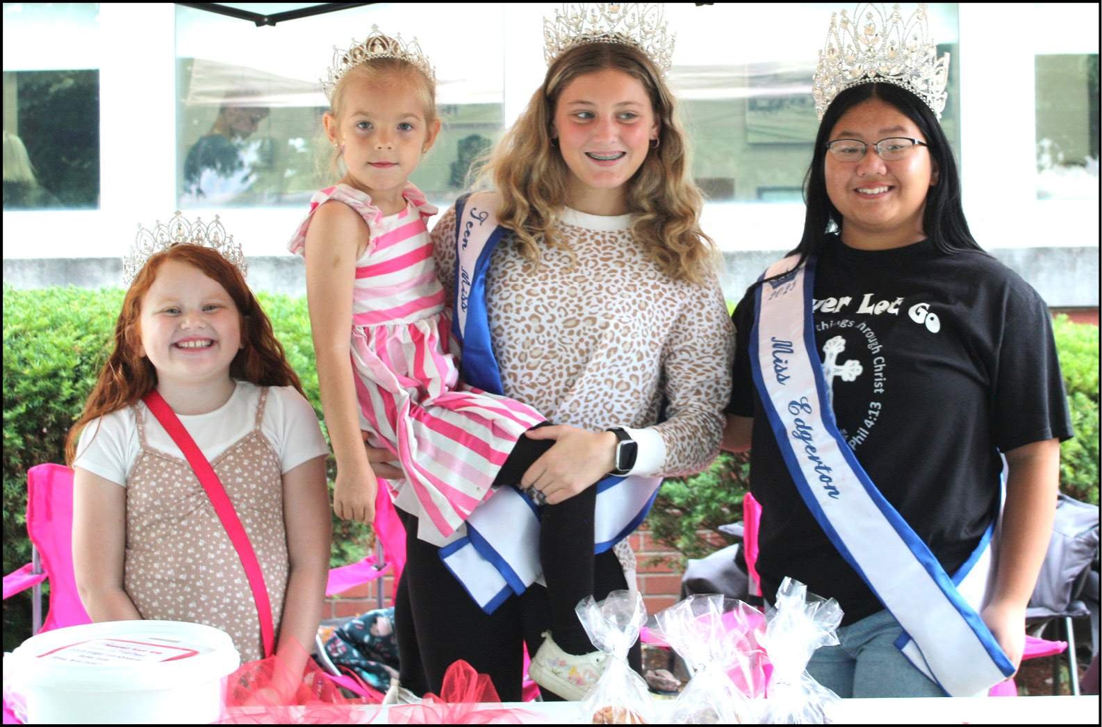 ROYALTY … Harper Nowak (Junior Miss Edgerton), Everleigh Dargitz (Little Miss Edgerton), Felicity Theil (Miss Edgerton), and Abigail Krill (Teen Miss Edgerton) hold their successful bake sale at the Edgerton Fall Fest.
