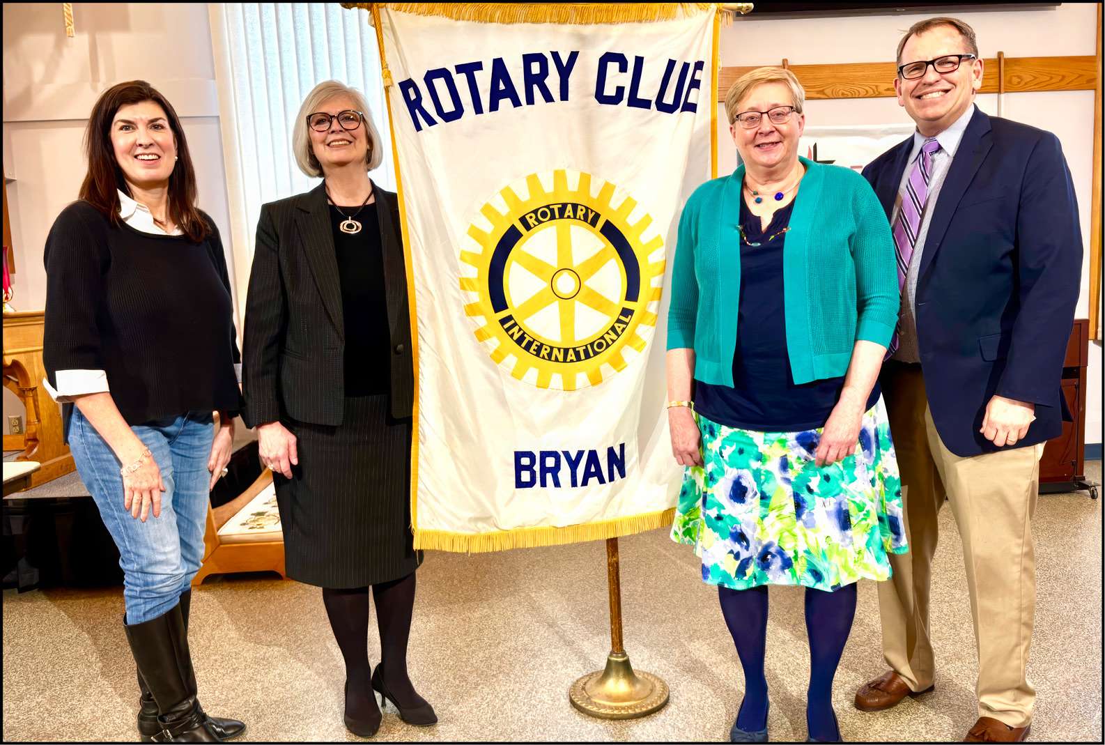 Pictured are Rotarian Jenny Horn, Defiance College President Richanne Mankey, Archivist Barb Sedlock, Vice President of Institutional Advancement Scott Wills.