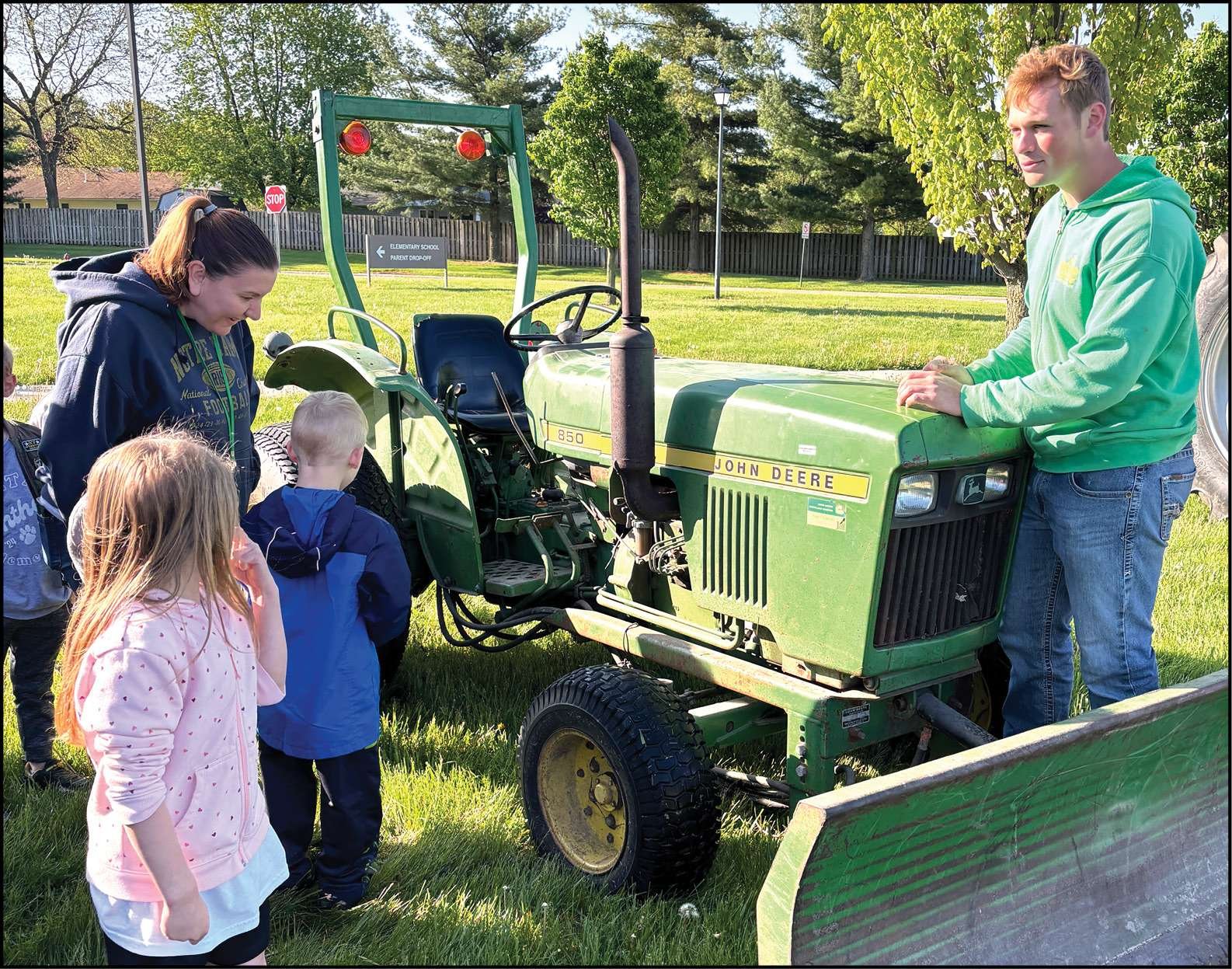TRACTOR SAFETY … Senior Walter Hallett IV talks to kids about tractor safety while showing off his John Deere 850.