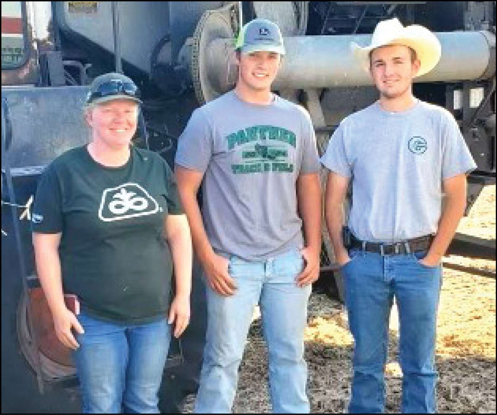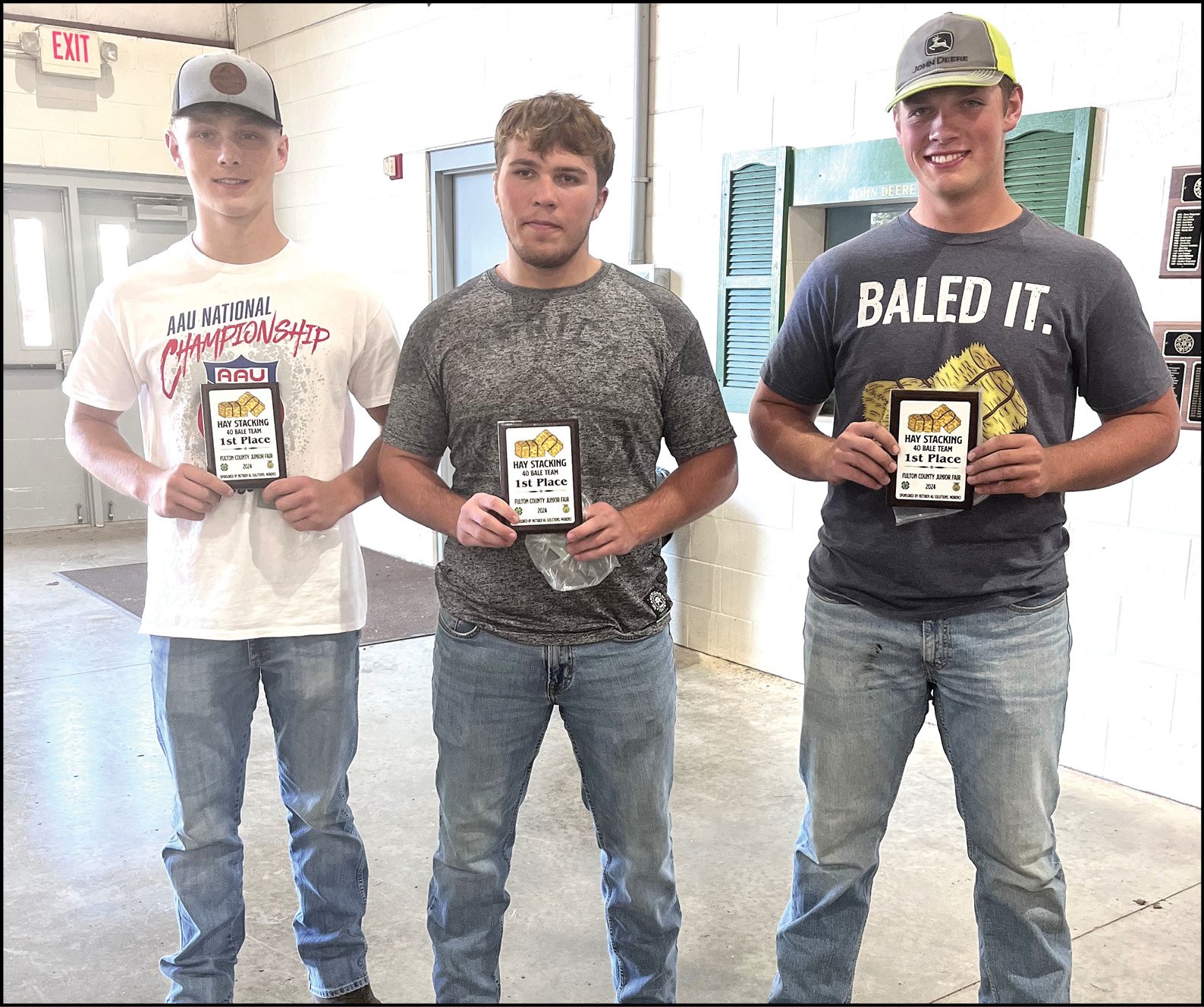FAIR CONTEST … Daniel Thatcher, Connor Sintobin, and Walter Hallett IV capture 1st place in the 40 bale Straw Loading Contest.