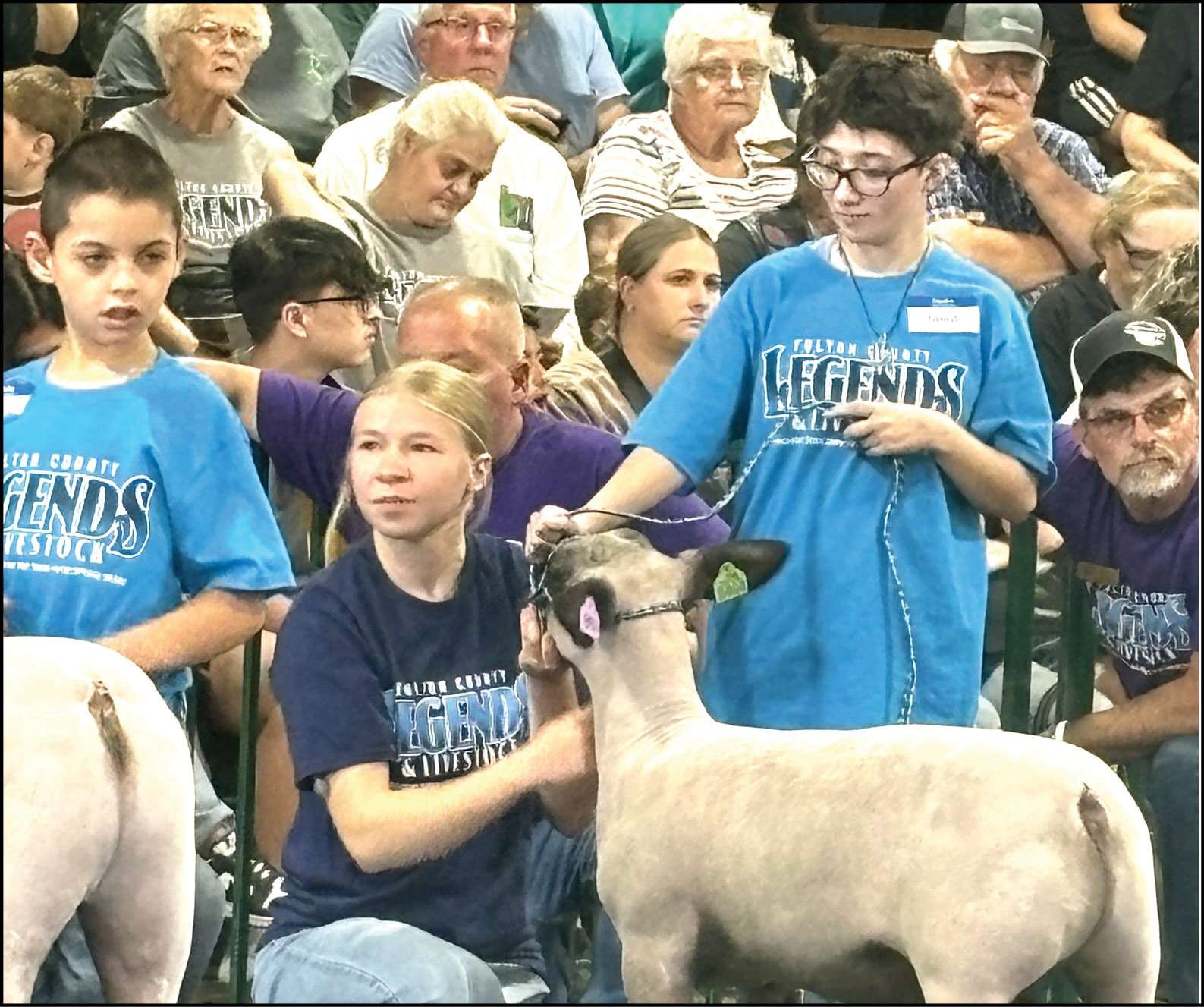 LENDING A HAND … Abby Savage helps her partner show her lamb during the 1st annual Legends and Livestock Show.