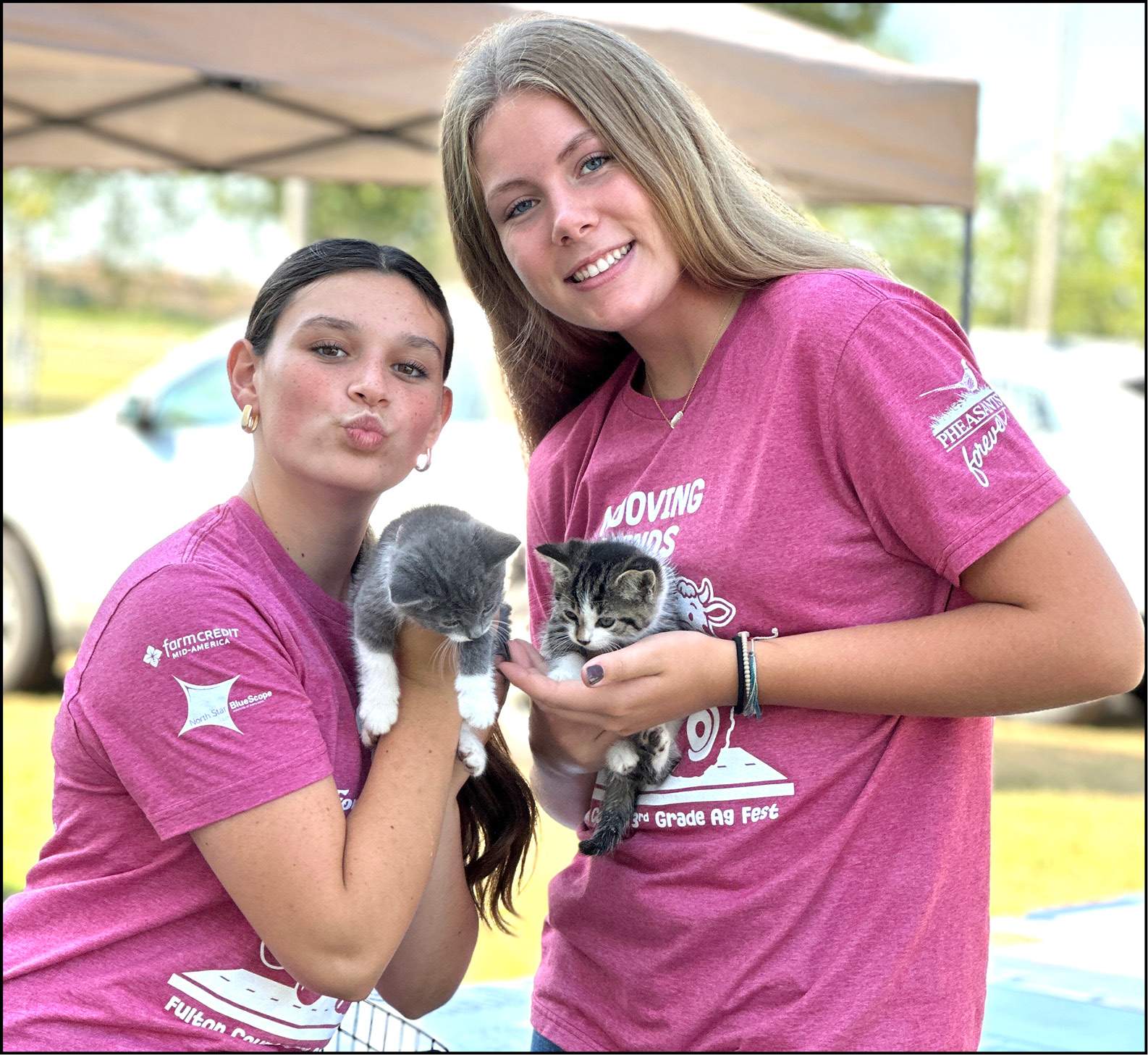 AG FEST … Junior Emmy Hintz and Senior Claire Bates with some of the adorable kittens.