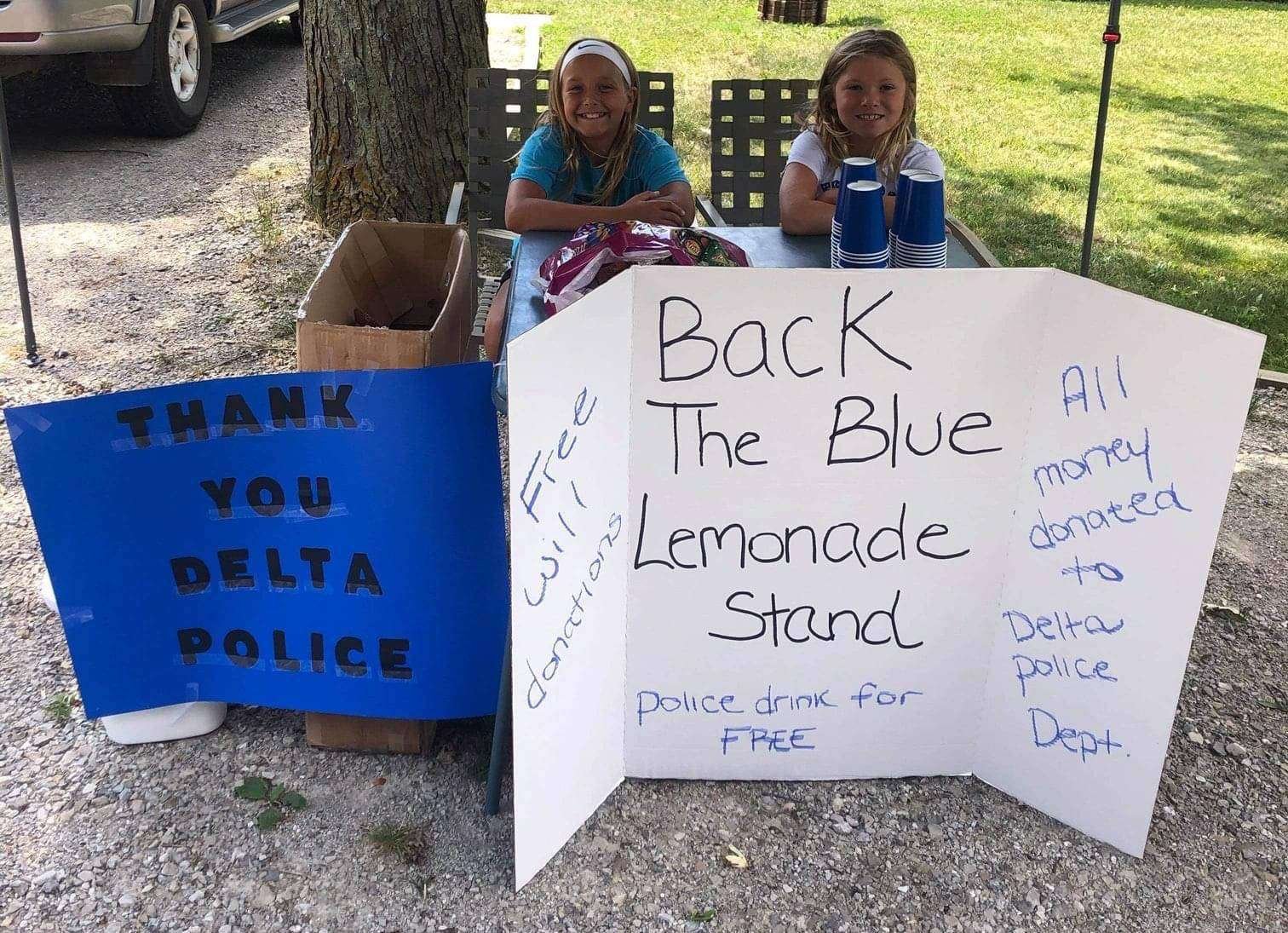 LEMONADE STAND … Ava Ziegler (right) and Eve Smith set up a lemonade stand in Delta to Back the Blue! All proceeds went to the Delta Police Department.