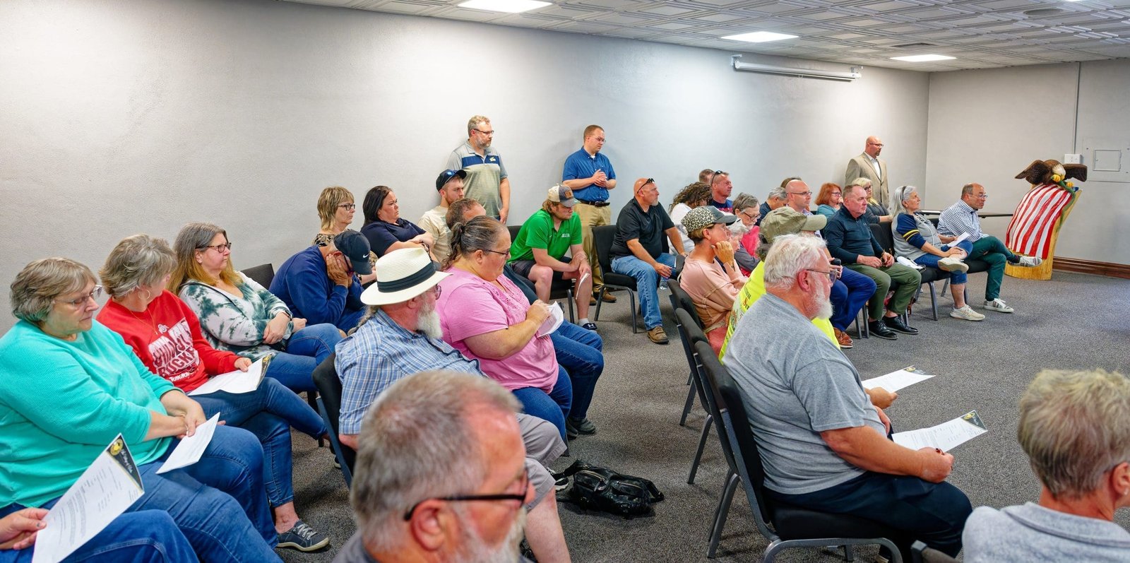 CROWDED … Village of Delta residents filled council chambers during the June 10th meeting. Not much was left in the way of seating, with some opting to stand on both sides of the room.