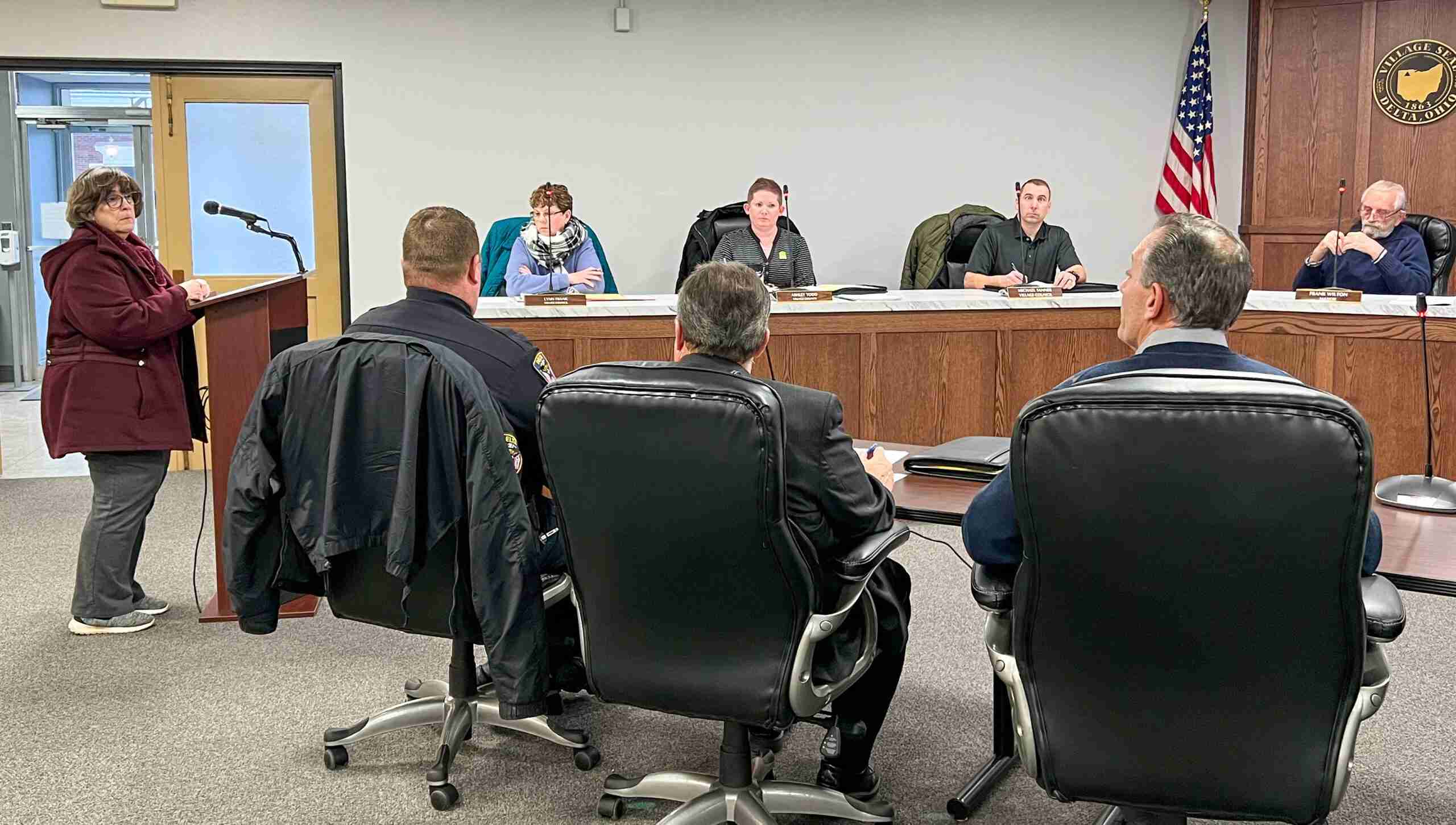 PUBLIC PARTICIPATION … Beth McSurley addresses the Delta Village Council regarding matters such as the flooding on her property, stones on Pelton Drive, and the possible new village pool. (PHOTO BY JACOB KESSLER, STAFF)