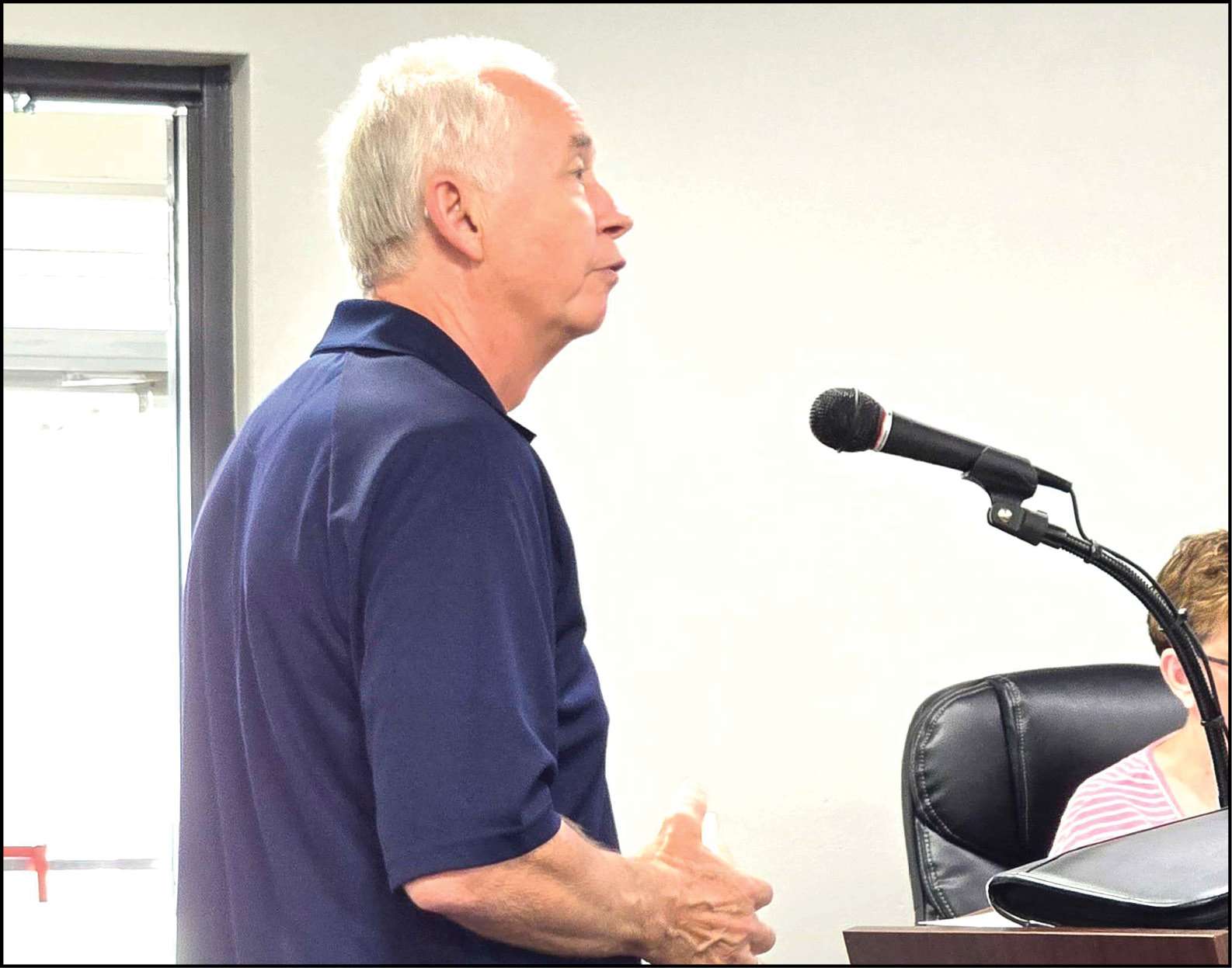 GETTING COVERED … Hylant Administrative Services Client Executive Conrad Beck addresses the Delta Village Council during its meeting Monday evening prior to a vote on renewing the village’s property and liability insurance.