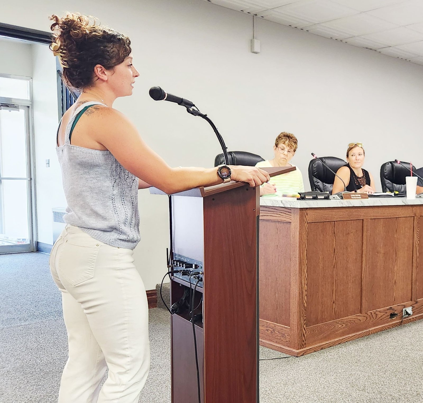 RAISING CONCERNS … Delta Chamber of Commerce President Kirsten Fruchey addresses the Delta Village Council during its most recent meeting. Fruchey was concerned about comments and behaviors she had seen from the council.