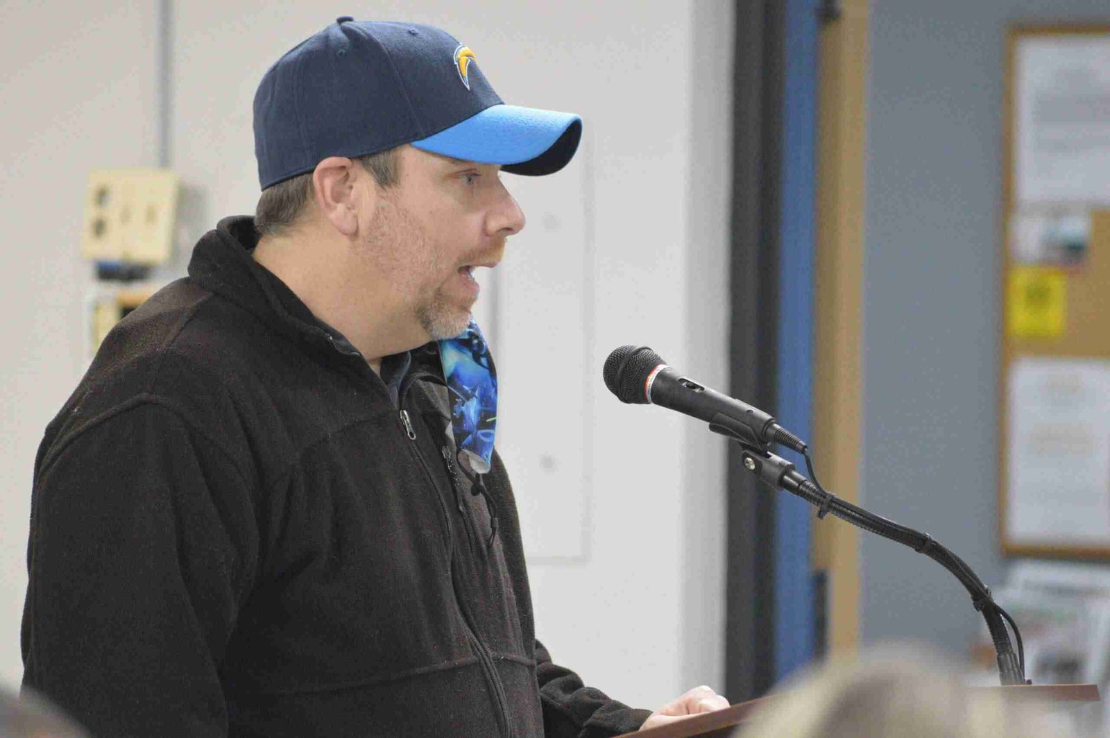 SNOW REMOVAL QUESTION  … Delta resident Steven Inkrott addresses Village Council with a request to consider maintaining the parks for use during the winter months. (PHOTO BY REBECCA  SCHWAN, STAFF)