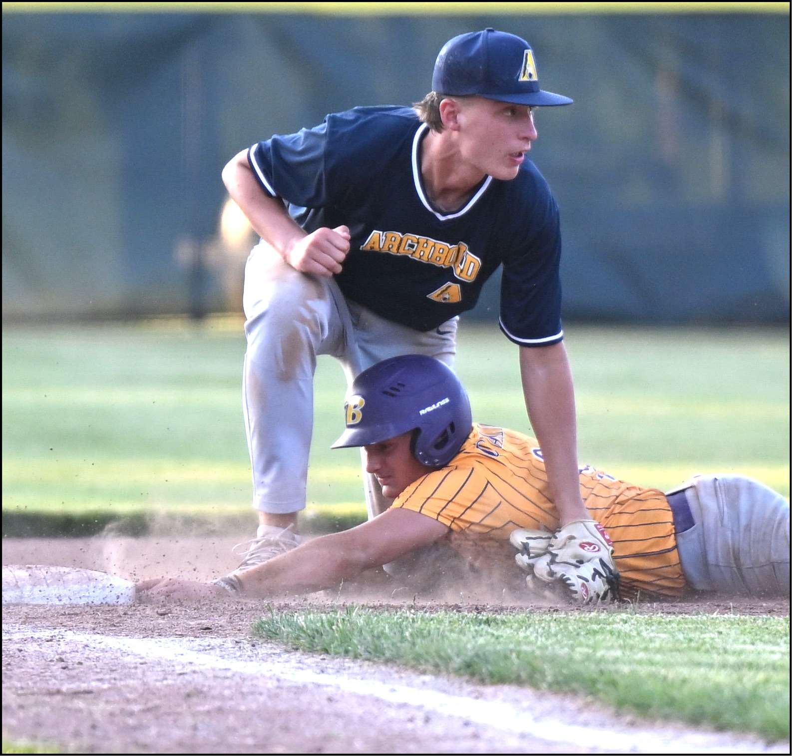 ACME DISTRICTS … Bryan’s Cade Carlin slides into third base under Archbold’s Wyatt Gericke.