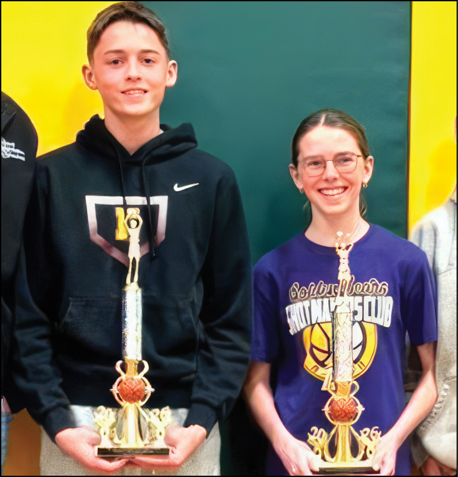 REGIONAL WINNERS … Owen Eldon (left) and Riley Bever (right) recently won their age group in the Knights of Columbus Free Throw contest, held February 22, at Ottoville, OH. They will advance to the state contest being held in Columbus on March 21, 2026. Owen attends Edgerton Schools, and Riley is a student in Bryan City Schools.