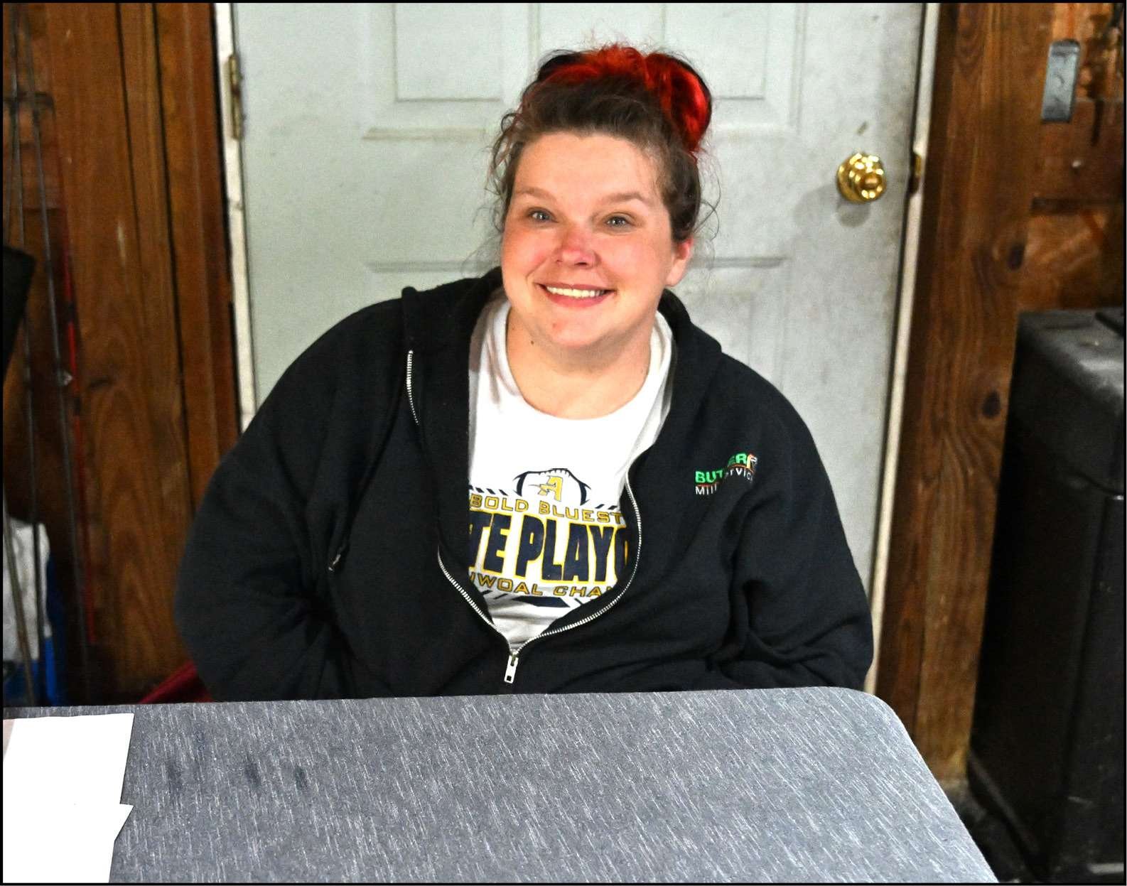 BARGAINS … Edgerton citizen Jen Roby comments on a great turnout during the community garage sales.