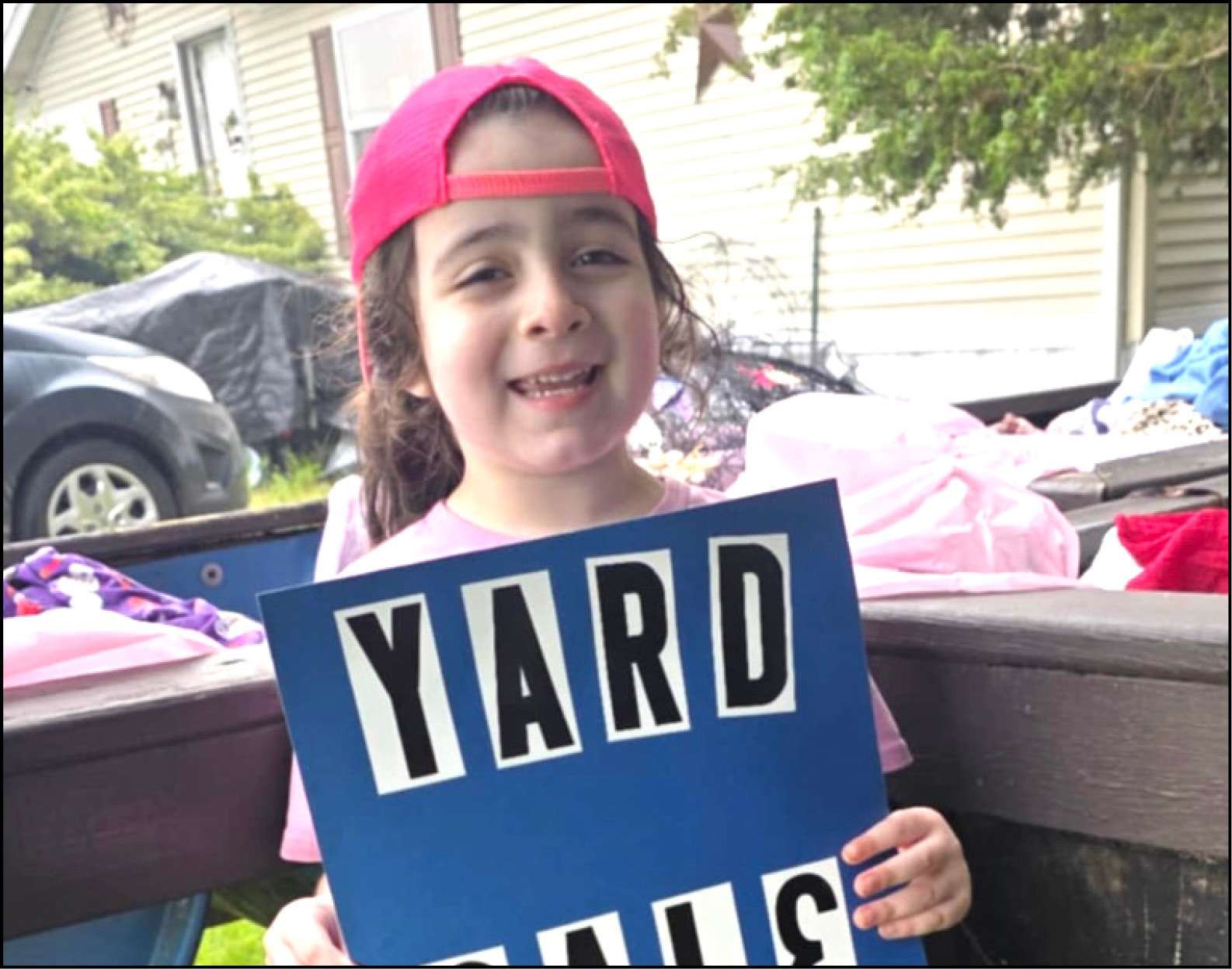 SOMETHING FOR ALL AGES… Ezrahleigh Vasquez shows her support for the sales!