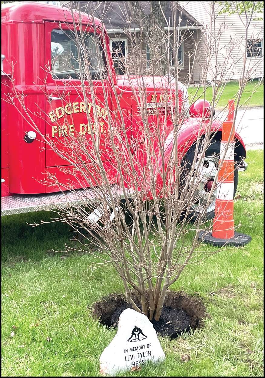 TRIBUTE … The tree planted for the ceremony, with endless support from the Edgerton Fire Department and its beloved community.