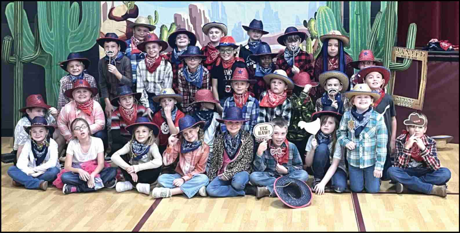 TIME TO DANCE … Edgerton 3rd graders taking a photo together before showcasing their square dancing skills under the direction of Mrs. Krill.