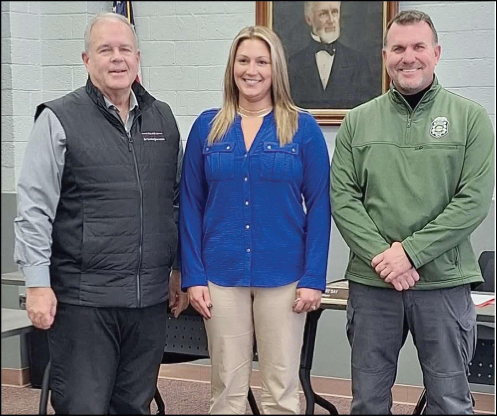 A motion was made to consider two police department hires, Ashley Plotts and Christian Stork. Both new hires were sworn in by Mayor Day with their families attending.