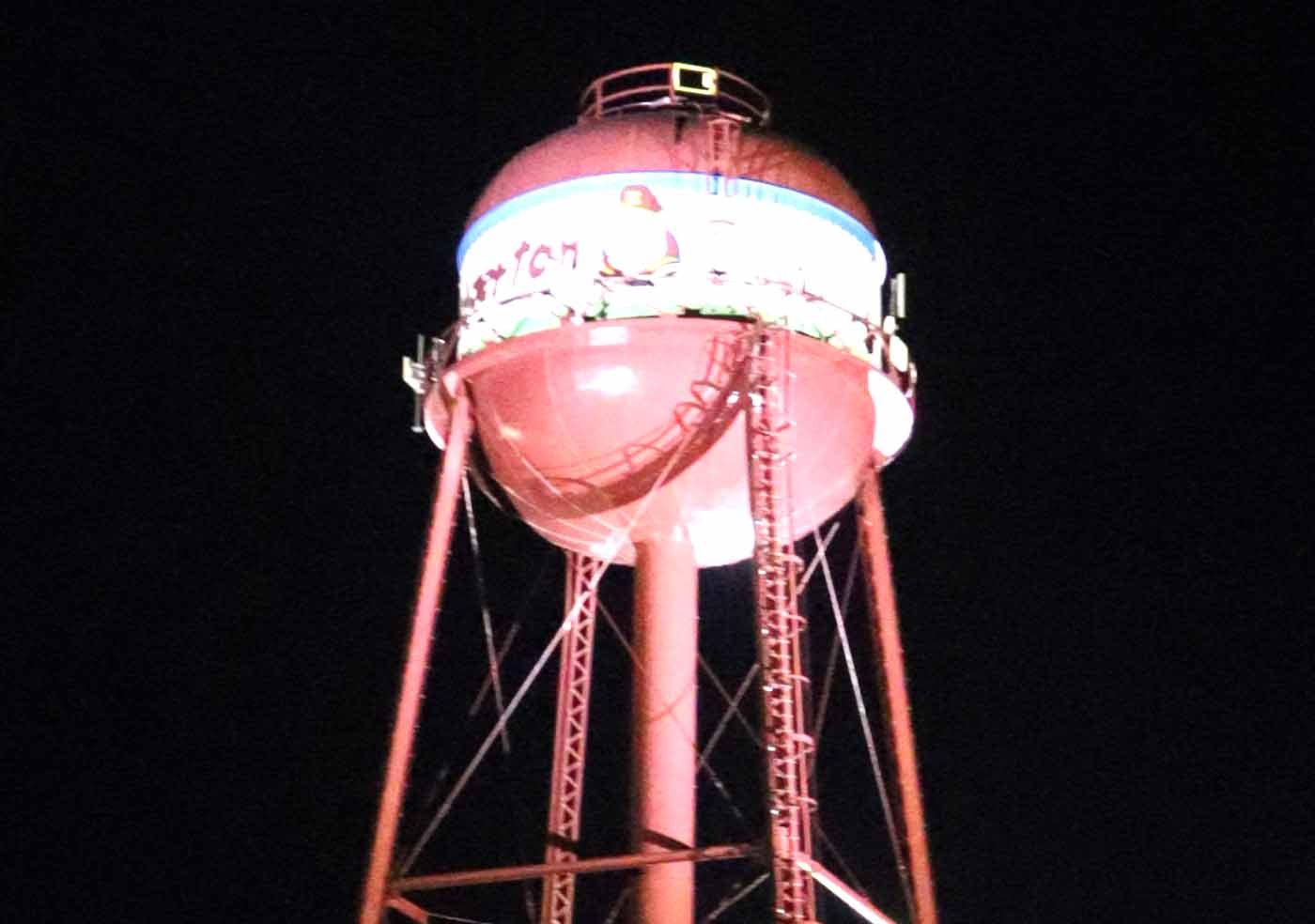 SHINING BRIGHT … Mayor Bob Day highlighted the newly upgraded water tower lighting as a standout in his latest report.