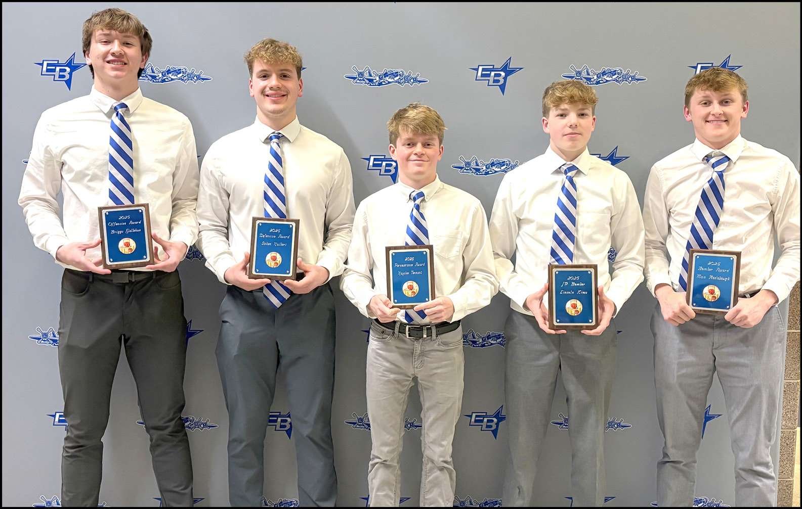 SPECIAL AWARDS … Offensive Award – Briggs Gallehue; Defensive Award – Cohen Hulbert; Perseverance Award – Hayden Tennant; JV Bomber Award – Lincoln Kiess; Bomber Award – Max Radabaugh.