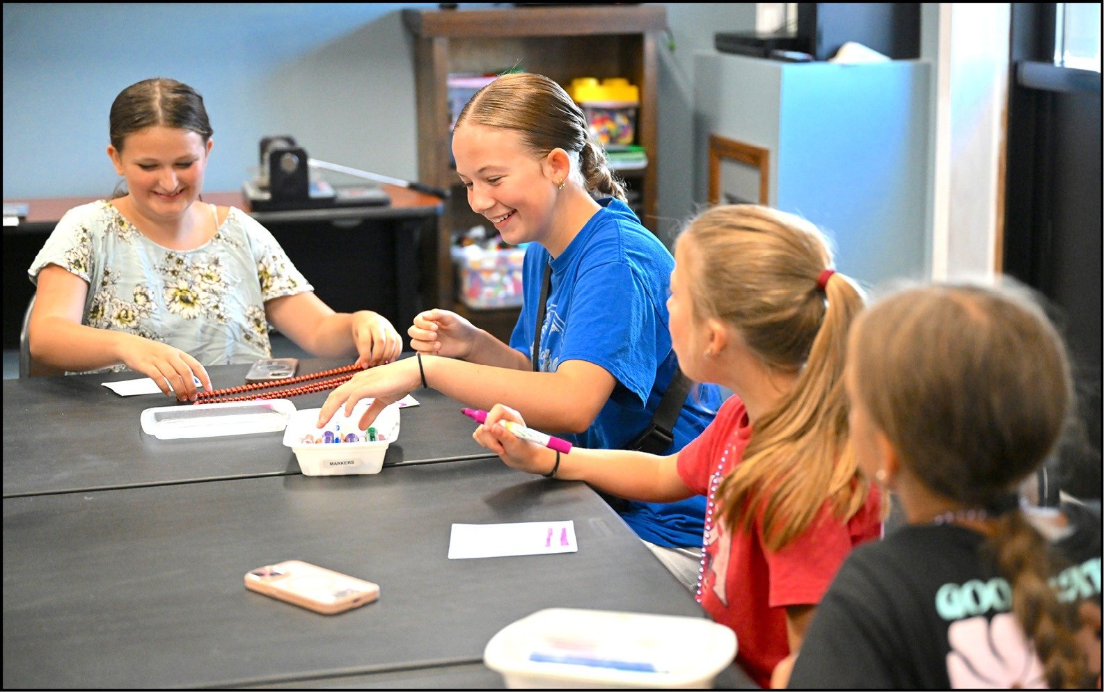The eager 3rd through 6th grade students who attended started by making custom name tag necklaces, showcasing their artistic abilities.