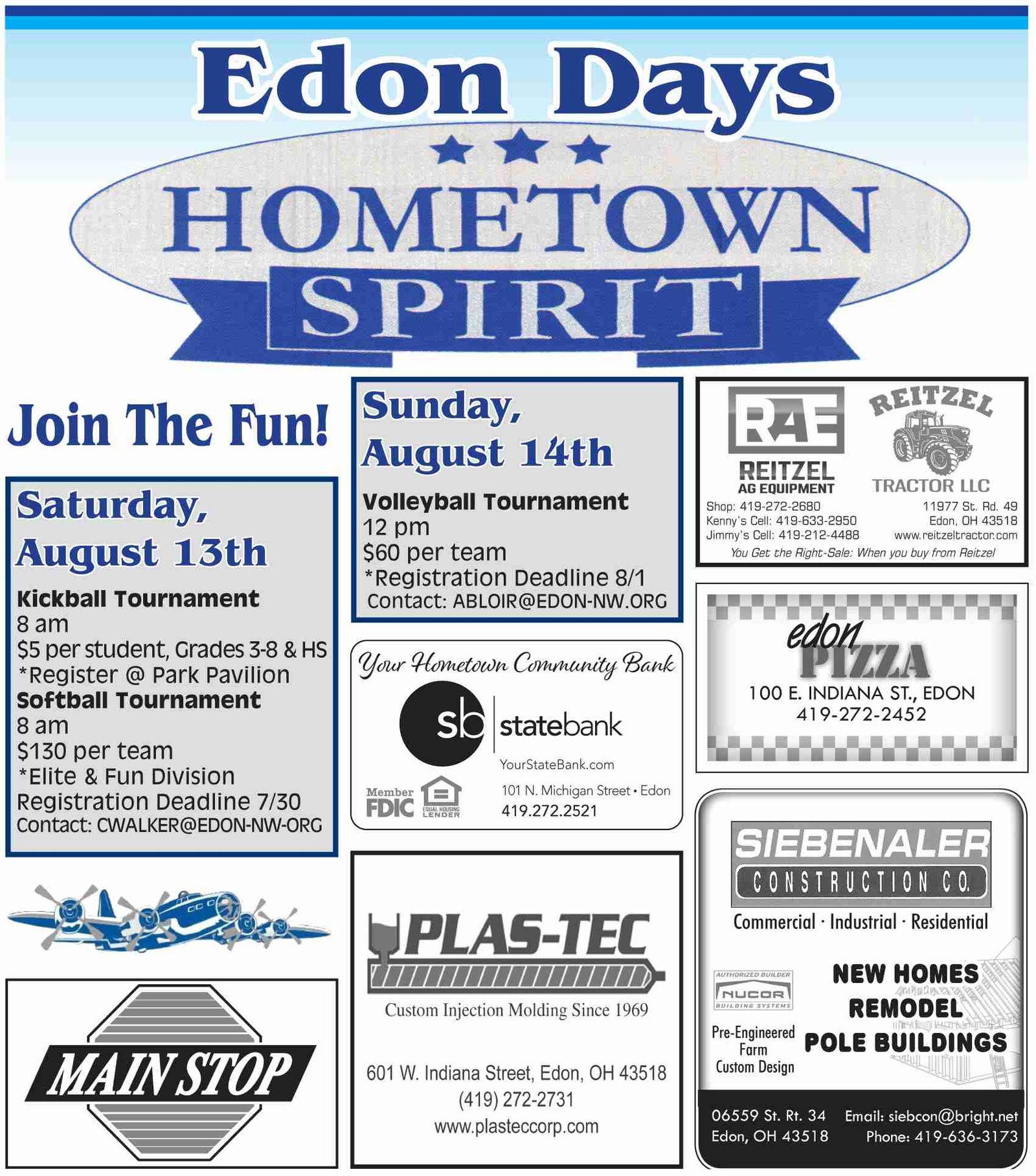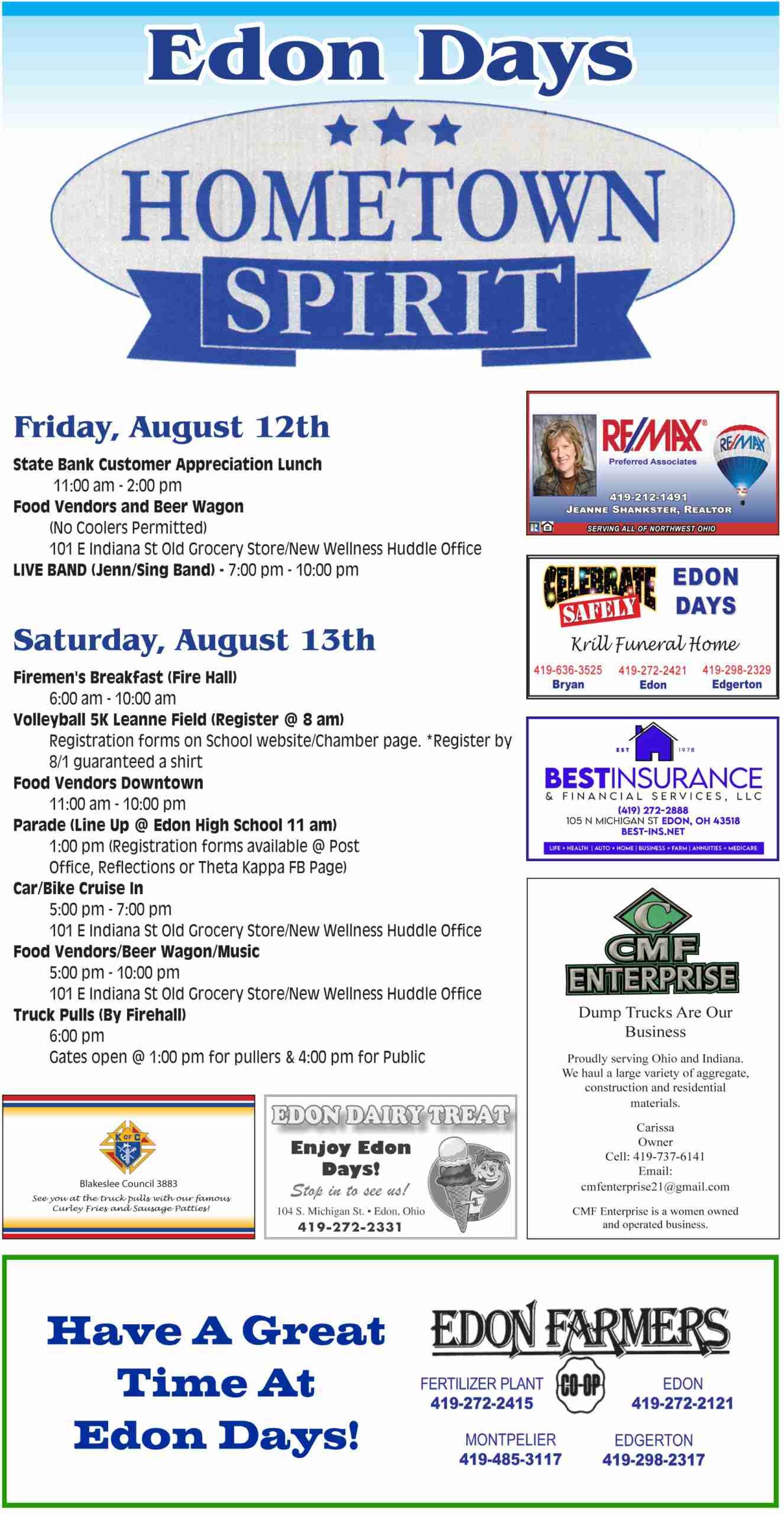 The annual Edon Days celebration is scheduled to take place this weekend. Thank you to this year’s sponsors for making promotion within both the print edition and online possible. Come out for a great family gathering!