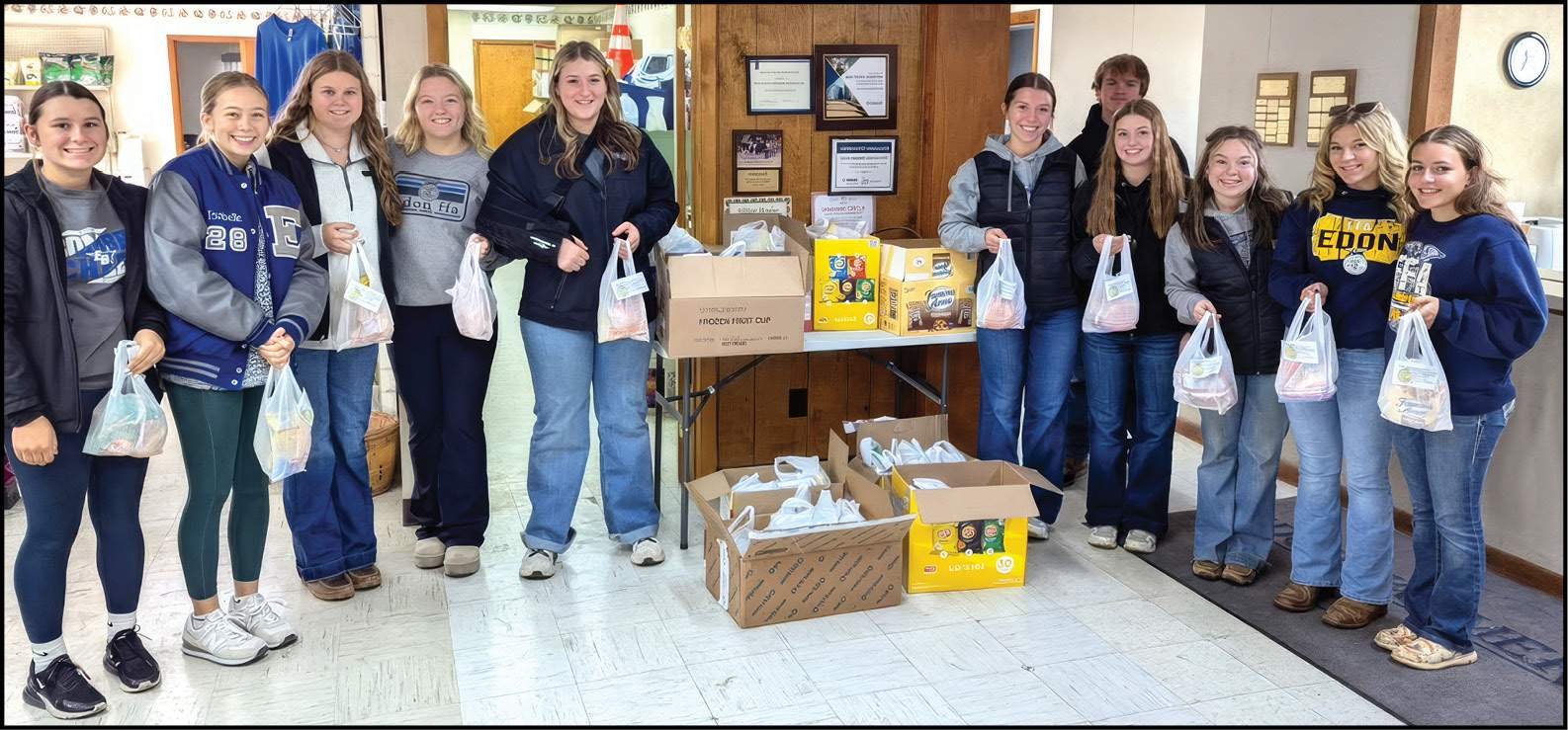 Edon FFA members and officers also worked together to assemble “Feeding Farmers” bags for our annual community outreach event.