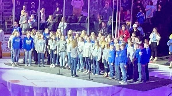 Forty-three Edon Junior High Choir Students sung on the ice in front of thousands of people who were attending the game against the Kalamazoo Wings.