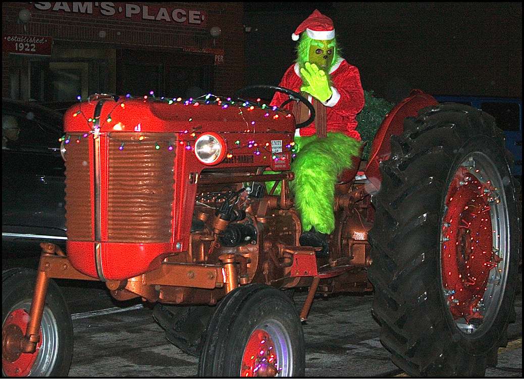 WHOVILLE VISIT … The Grinch made a special appearance during the parade, riding in on a classic red tractor.