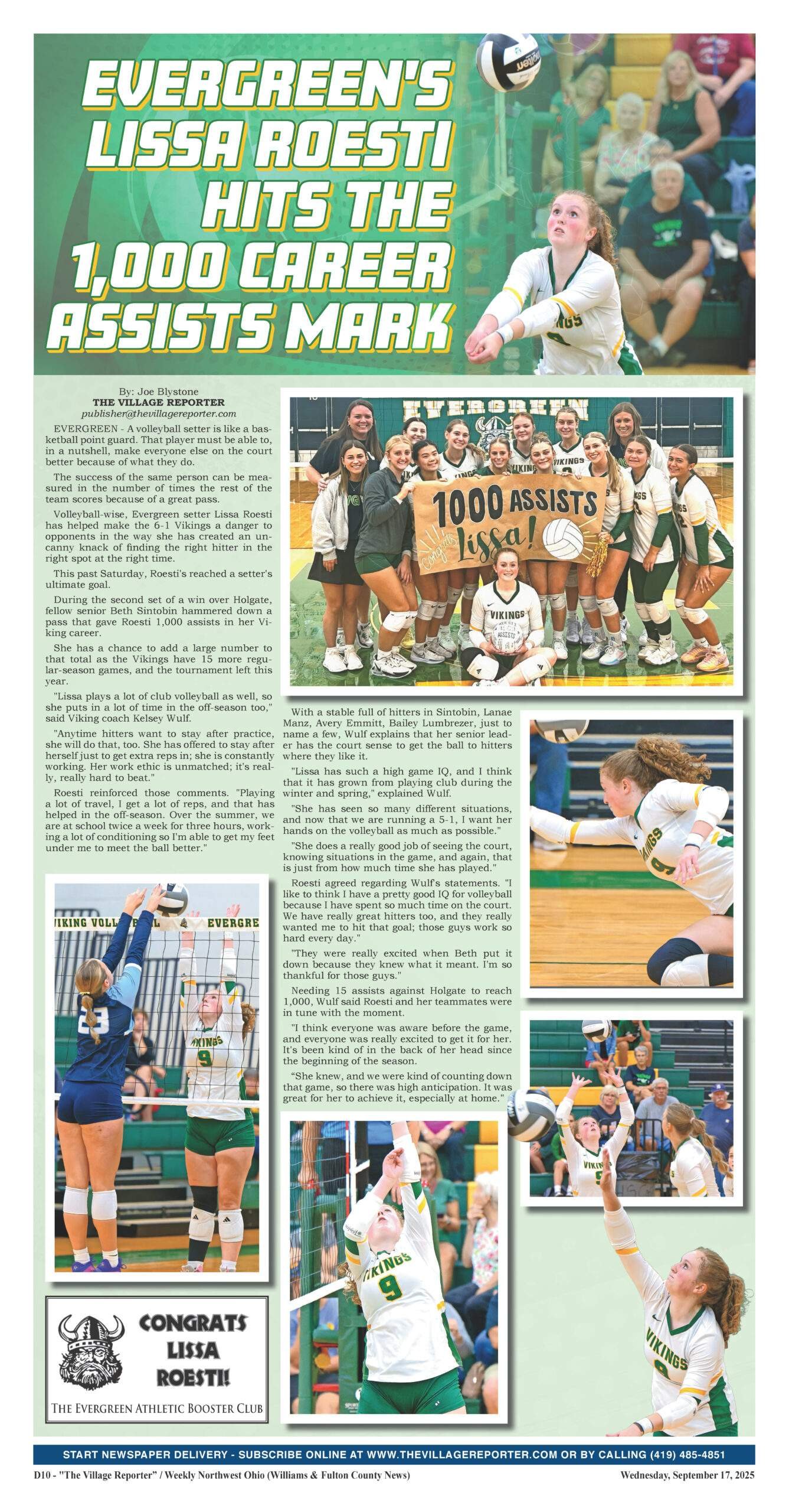 Recently, Roesti’s reached a setter’s ultimate goal. During the second set of a win over Holgate, fellow senior Beth Sintobin hammered down a pass that gave Roesti 1,000 assists in her Viking career.