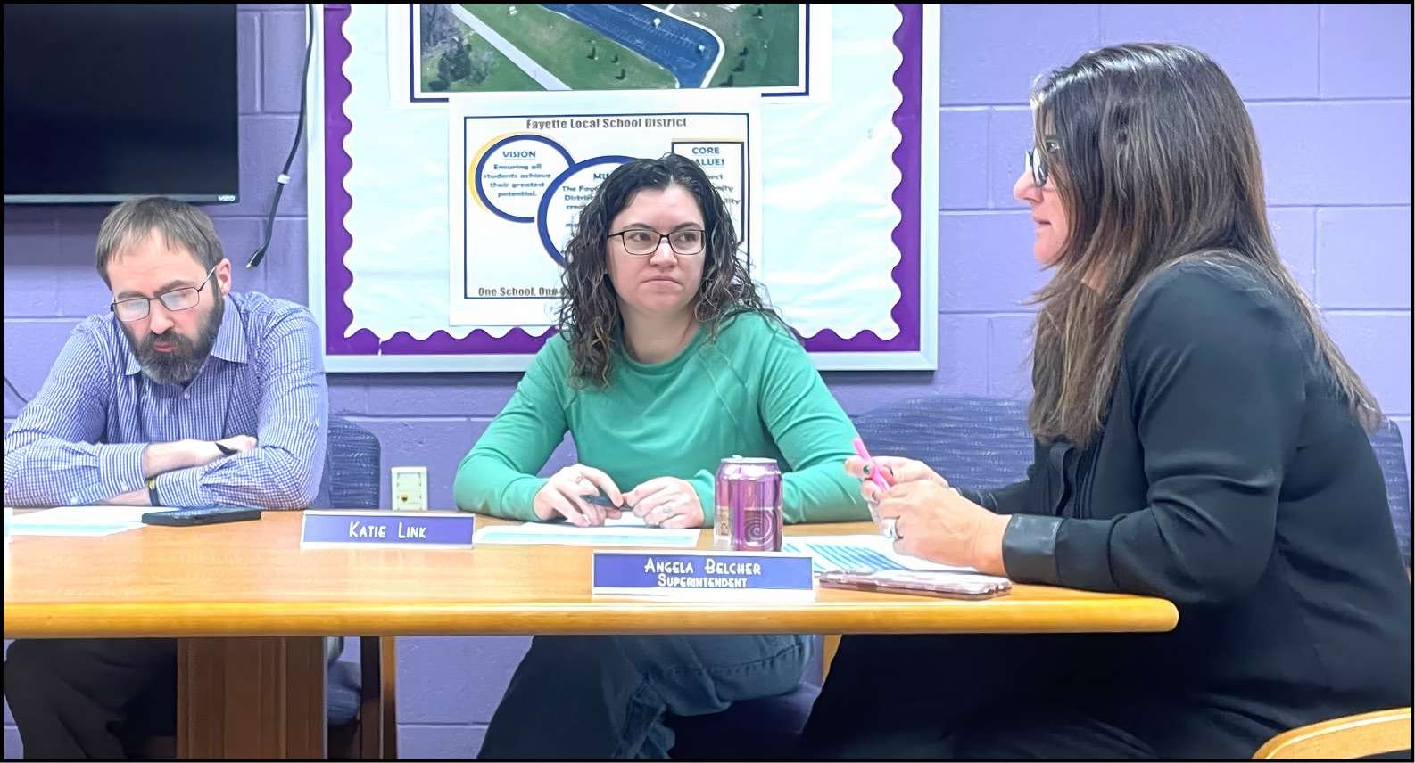 The Fayette School Board had their monthly meeting on Monday the 18th, at 6 p.m. It immediately opened with the Pledge of Allegiance and was followed by roll call.