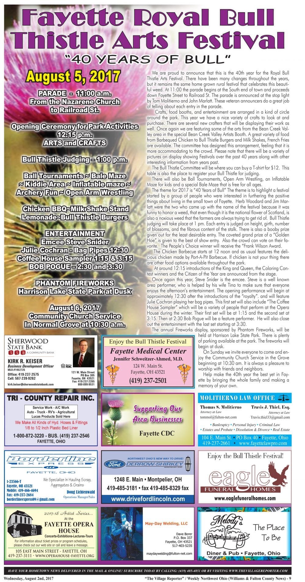 Thank you to this year’s sponsors for making both our print and web promotions of the Bullthistle Festival possible!