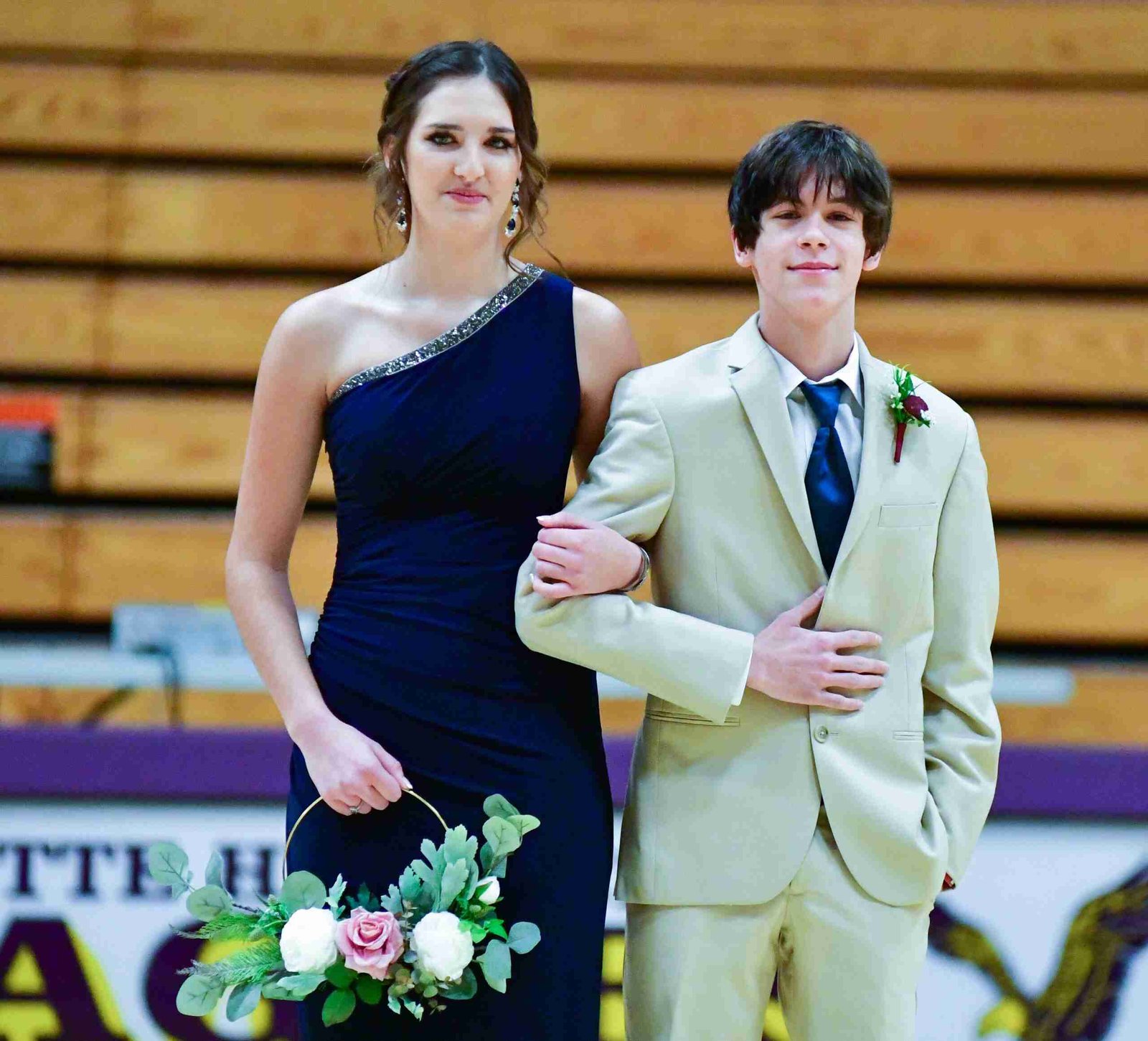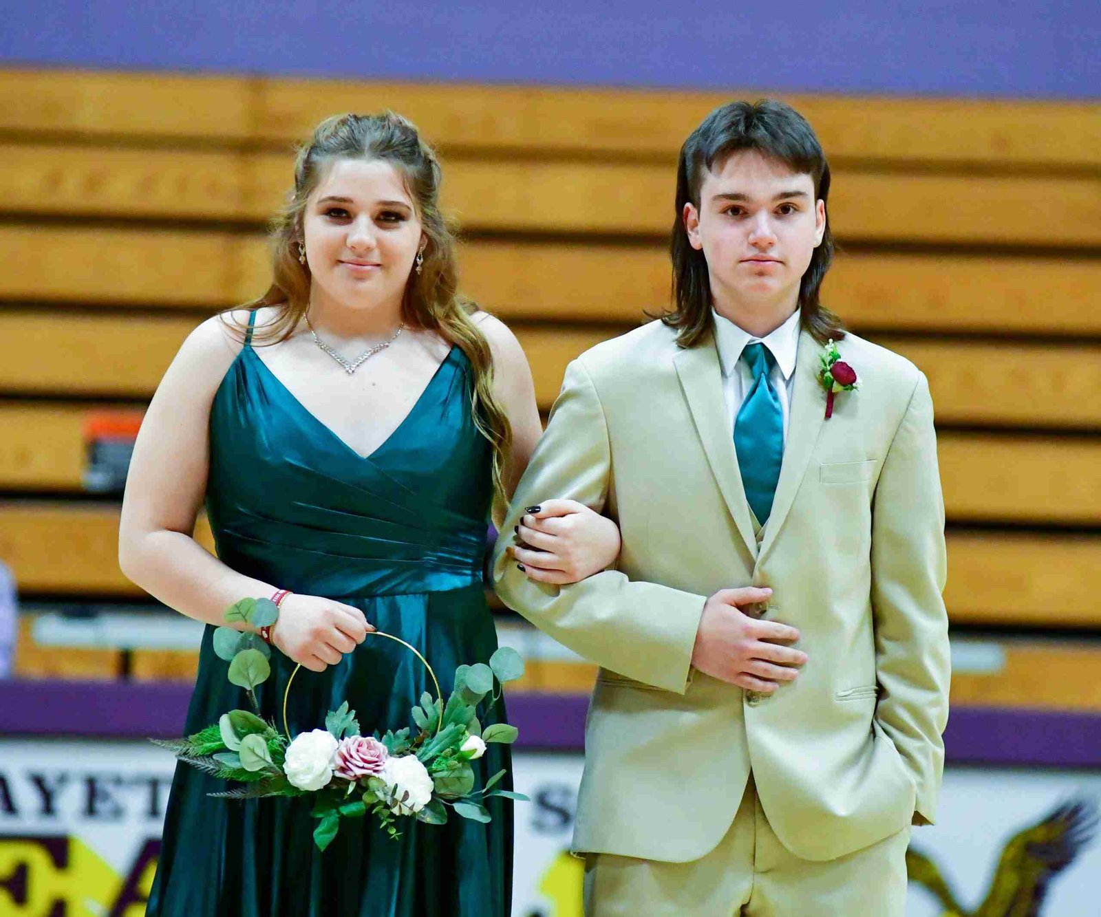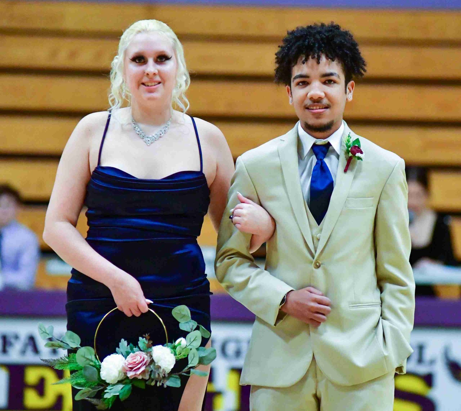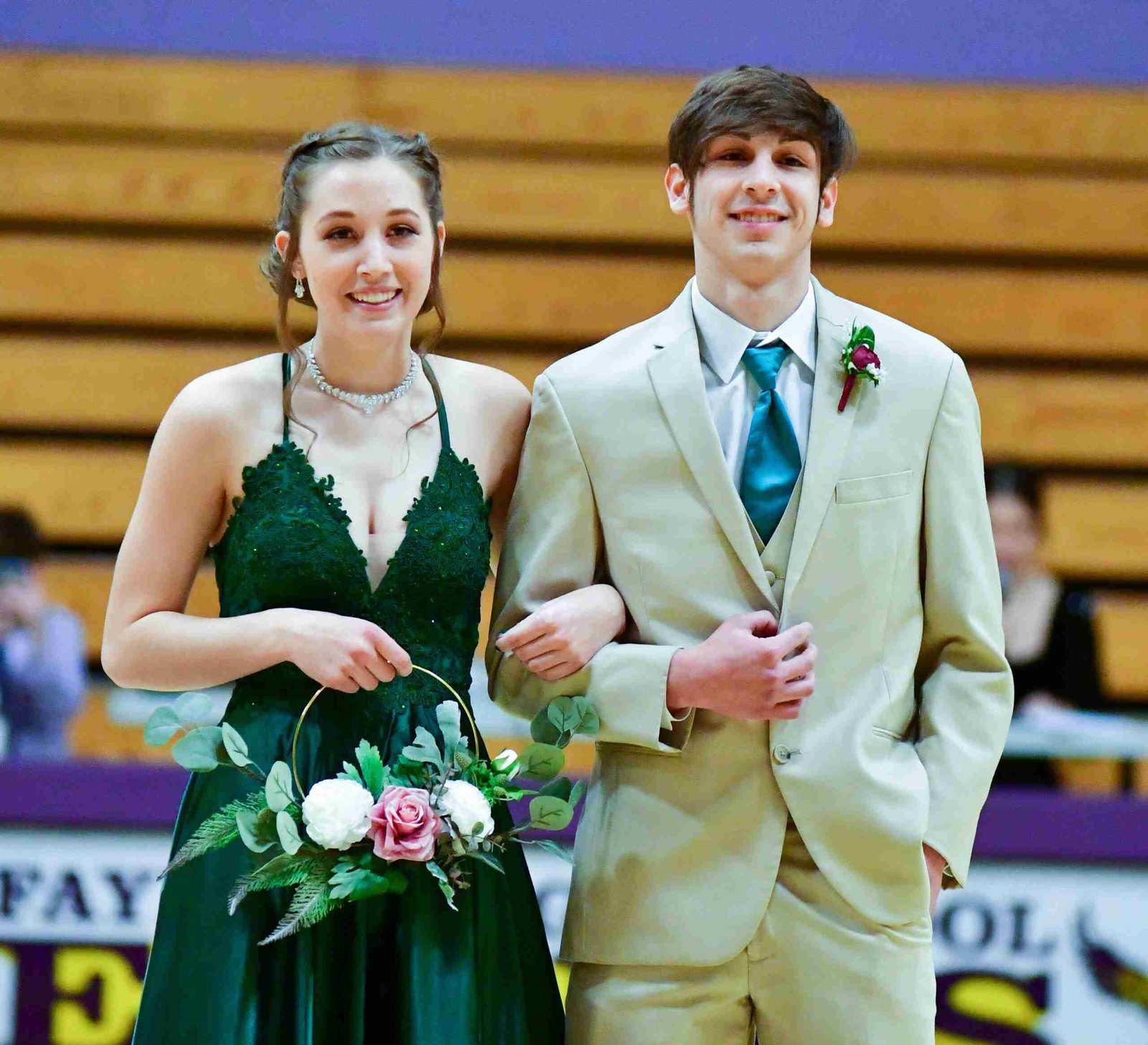 Each pair entered the gym and took their places before the crowning of the King and Queen took place. With this year’s ceremony, the introductions started with Freshmen Attendant and Escort Zoie Brown and CJ Szabo.