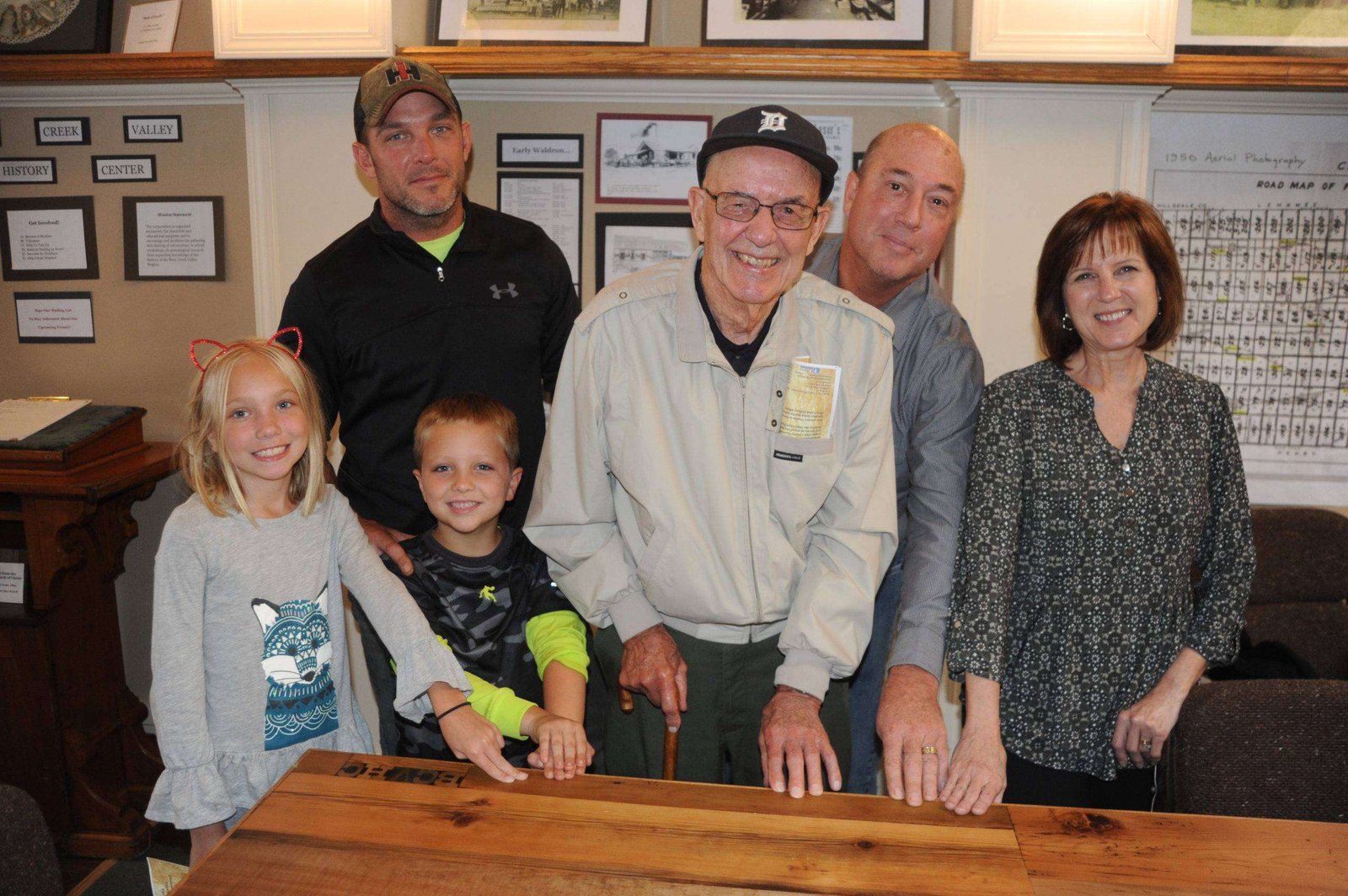 The first dedication was that of the Tom Spiess Community Table. Composed of materials culled from several historically significant buildings throughout the area, this table, constructed by Brent Holland, was a dream of Spiess, and is situated in the Bean Creek Valley History Center.