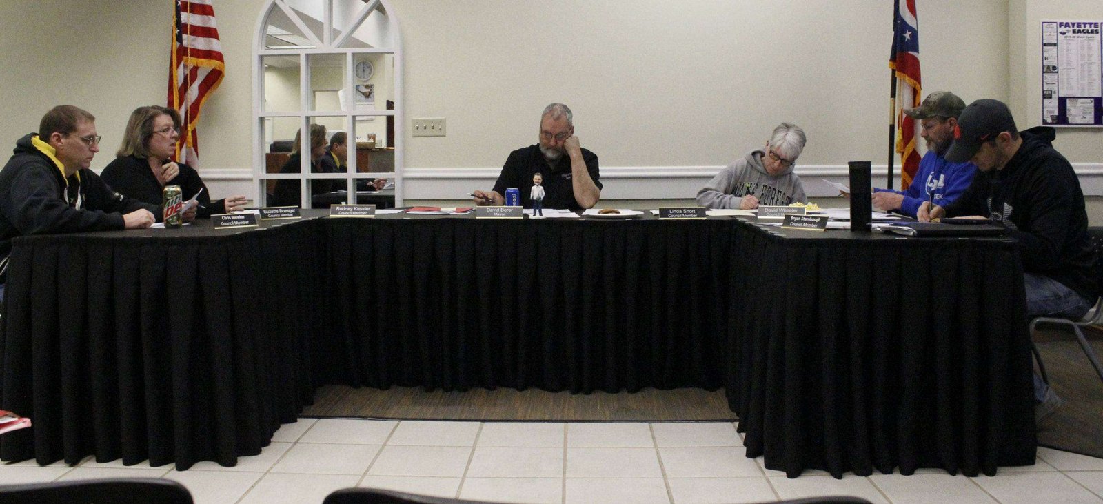 On February 26, at 6:00pm the Fayette City council meeting was called to order. Attending were Mayor David Borer, council members: Chris Meeker, Suzette Boesger, Linda Short, David Wheeler, and Bryan Stambaugh. Absent from the meeting was council member: Rodney Kessler. Visitors attending were Village Administrator: Genna Biddix, Village AttorneyMr. Thompson, Village resident: Karen King, State Line Observer: David Green.