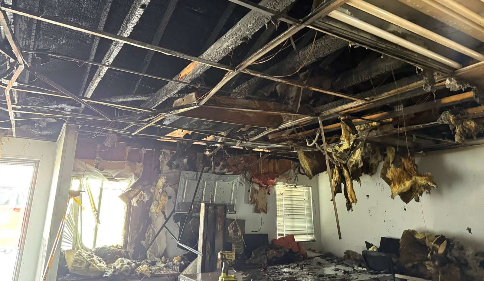 “I got a fire extinguisher, and I tried to put it out,” Trejo said. “As I lifted another ceiling tile, the fire flashed over and went across the ceiling, and at that point we evacuated everyone out of the building.” He said there were six people in the building at the time.