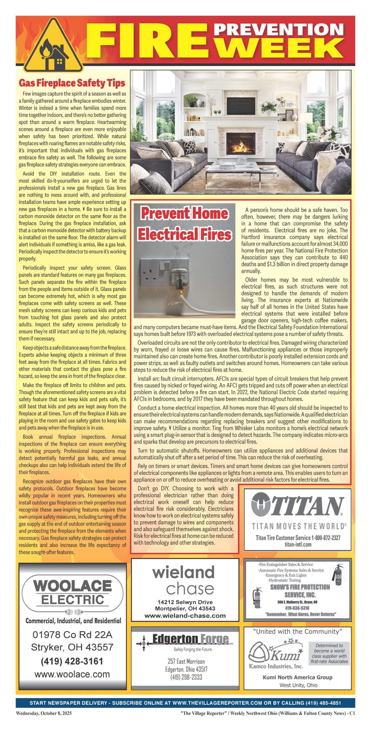 Stay safe this season! Our latest issue covers essential gas fireplace and electrical fire safety tips for local families. Learn how to protect your home with expert advice—from annual fireplace inspections and safe installation to preventing overloaded circuits and electrical hazards. Don’t miss these practical steps to keep your loved ones safe and cozy all winter long. Read more in this week’s edition of The Village Reporter