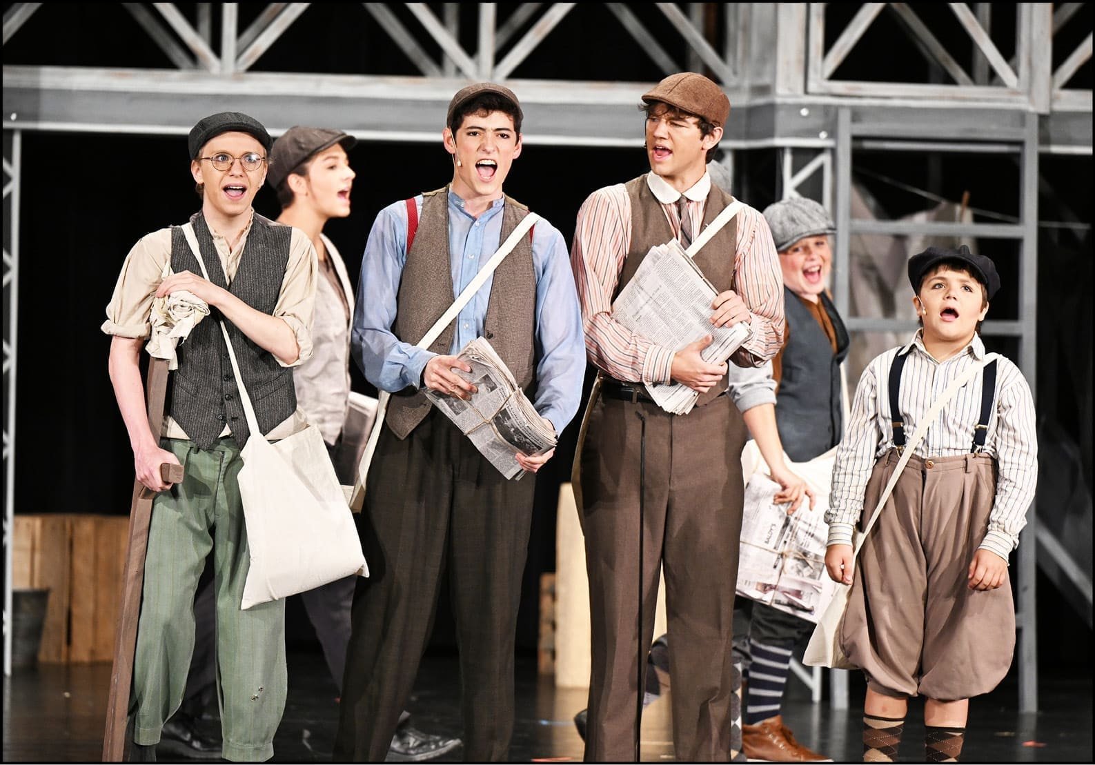 Newsies was performed for four show dates of July 18, 19, 20 & 21 at the Arts & Ed. Center building in Bryan. The 2 1/2-hour production featured two acts each with nine scenes performed, with an intermission between the acts. The production included 16 musical numbers throughout the eighteen scenes, each performed with heart from each cast member involved.