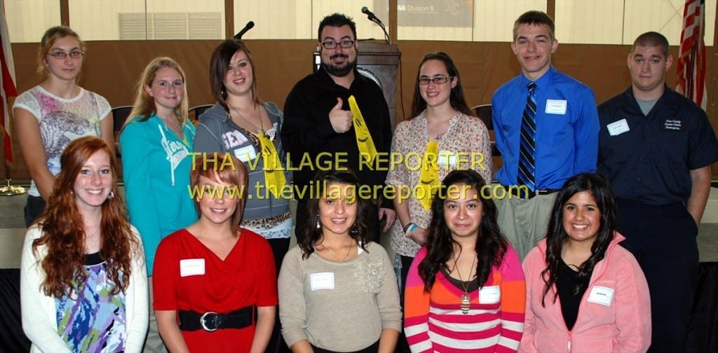 Eleven Four County Career Center students recently participated in the 25th Annual Northwest Ohio Student Leadership Conference held at Defiance College. In an effort to recognize the importance and encourage area high schools to work more closely together on leadership activities, students in leadership roles from 36 high schools in the six county area were asked to attend the day event. The keynote speaker for the day was Chris Bowers, a top speaker dedicated to the positive influence and motivation of students through the use of humor and story telling. Shown with Bowers are Career Center students (FRONT – LEFT TO RIGHT) Allison Buttermore (Fairview) Sports Fitness & Exercise Science; Taylor Rosebrook (Patrick Henry) Cosmetology; Veronica Valdez (Holgate) Sports Fitness & Exercise Science; Victoria Vasquez (Fairview) Hospitality Services; Jessica Vasquez (Fairview) Interior Design; (BACK – LEFT TO RIGHT) Alicia Herman (Edgerton) Agriculture/Diesel Mechanics; Jennifer Kowalis (Edon) Accounting & Business Management; Alexandria Durocher (Edon) Cosmetology; Bowers; Kylee Nickels (Hilltop) Medical Office Technology; Joel Brakefield (Pettisville) Software Design & Web Development; and Seth Nofziger (Delta) Powersport Engine Technology.
