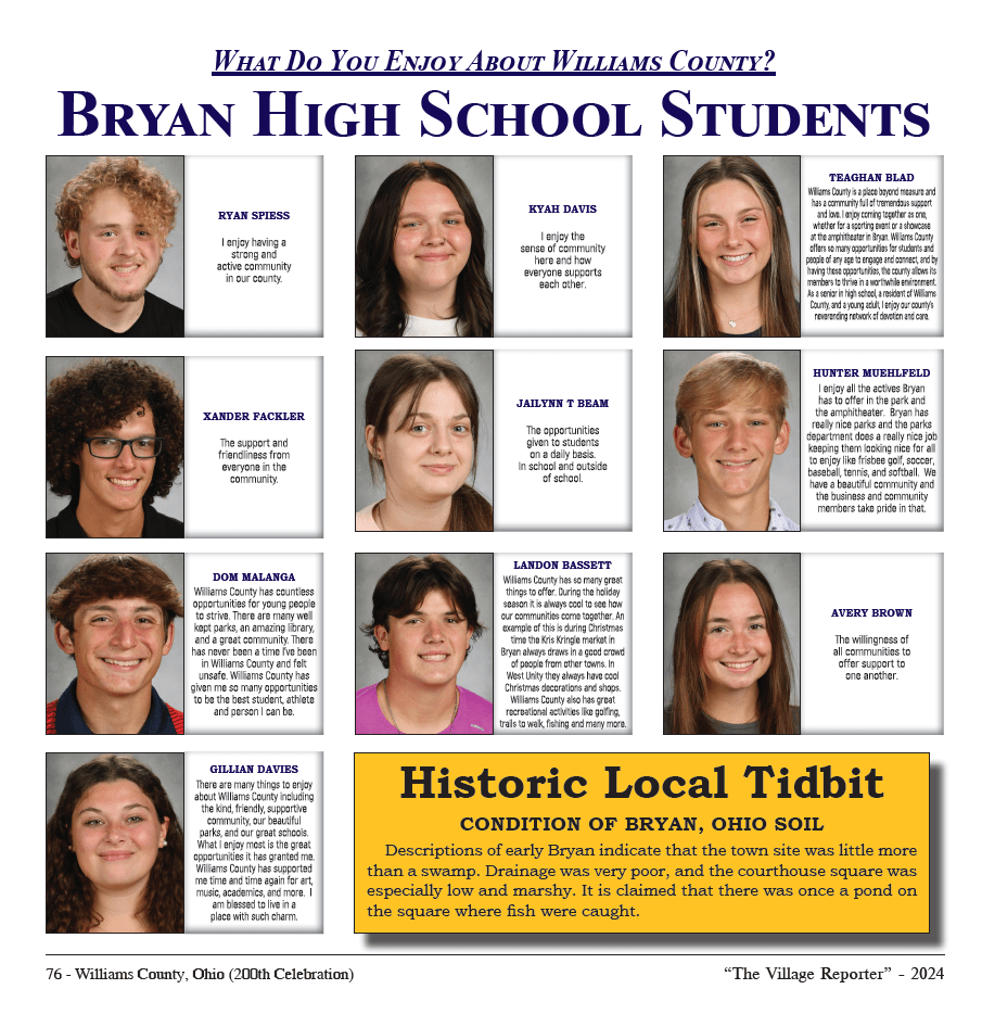Fulton County is celebrating its 175th anniversary in 2025, and The Village Reporter is partnering with county leadership to produce a special keepsake tribute, planned for release around the time of the fair. We are requesting 12 sophomores from each Fulton County school, selected by faculty, to answer the provided question for inclusion in this keepsake. Please ensure each submission includes a clear, non-blurry photo along with the answers.