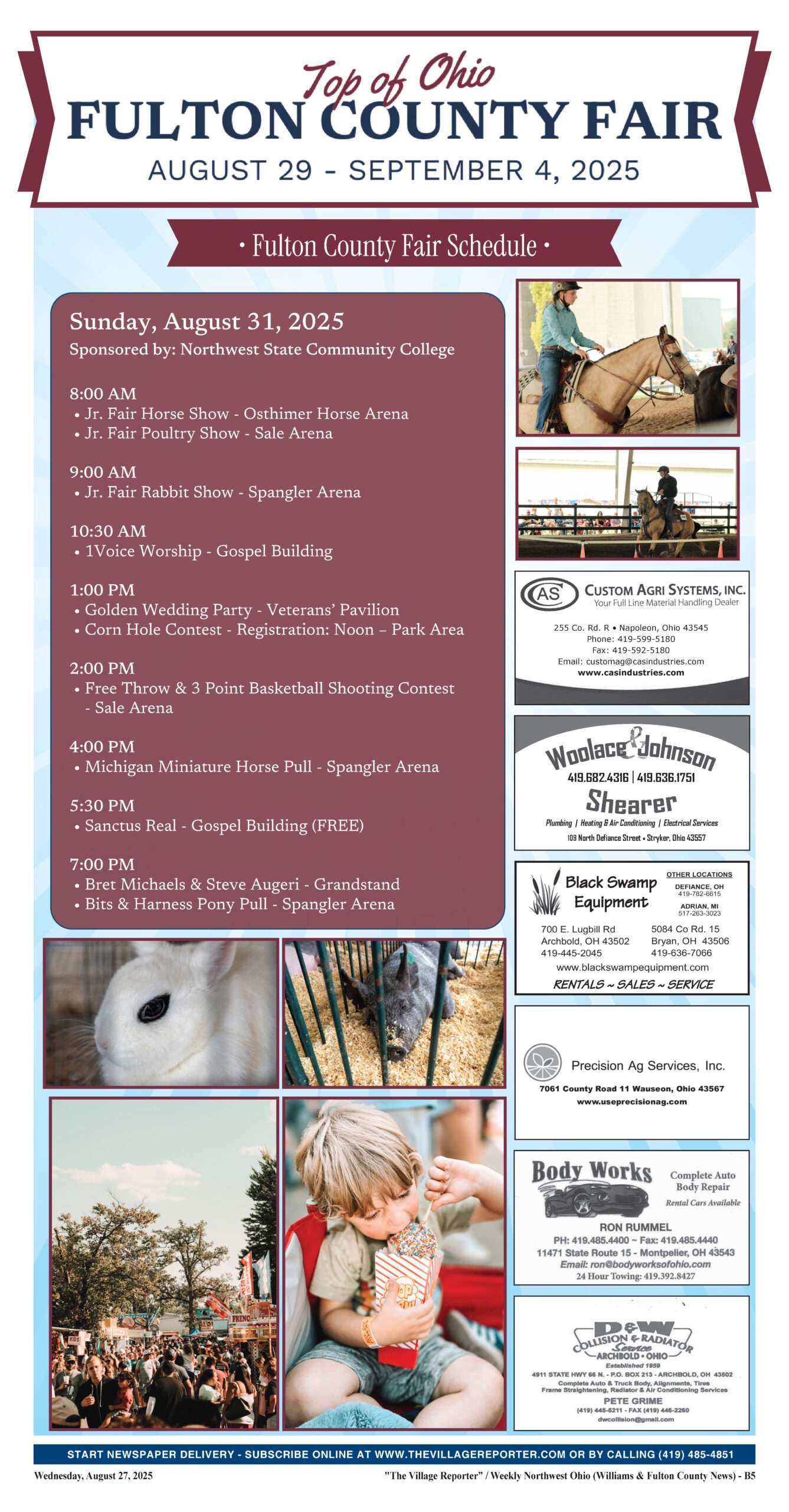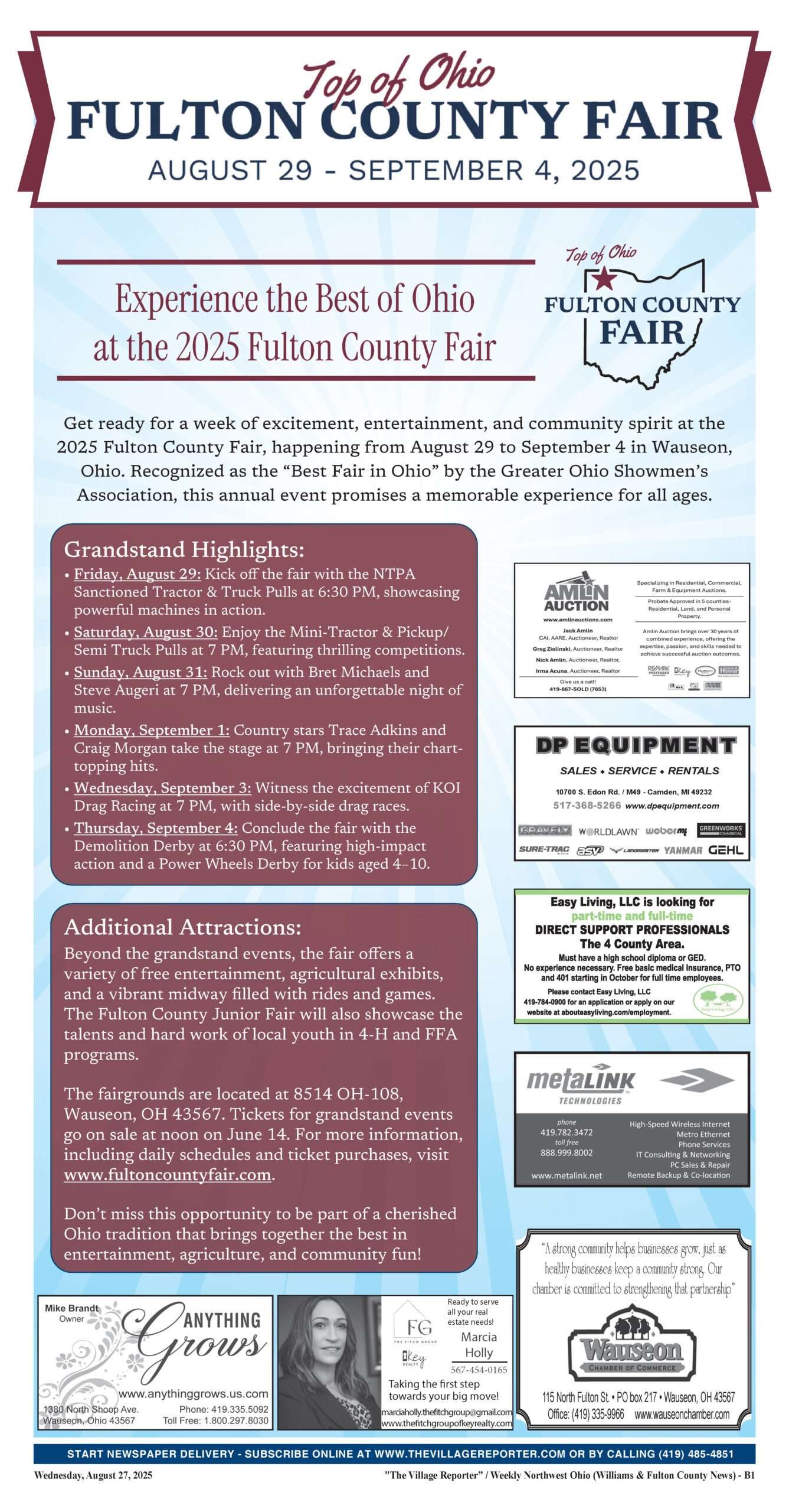 Experience the excitement of the 2025 Fulton County Fair in Wauseon, Ohio, running August 29–September 4, with grandstand events including concerts, tractor pulls, drag racing, and a demolition derby. Enjoy free entertainment, agricultural exhibits, a vibrant midway, and the Junior Fair showcasing 4-H and FFA youth. Don’t miss this cherished Ohio tradition—find daily schedules and ticket information at fultoncountyfair.com.