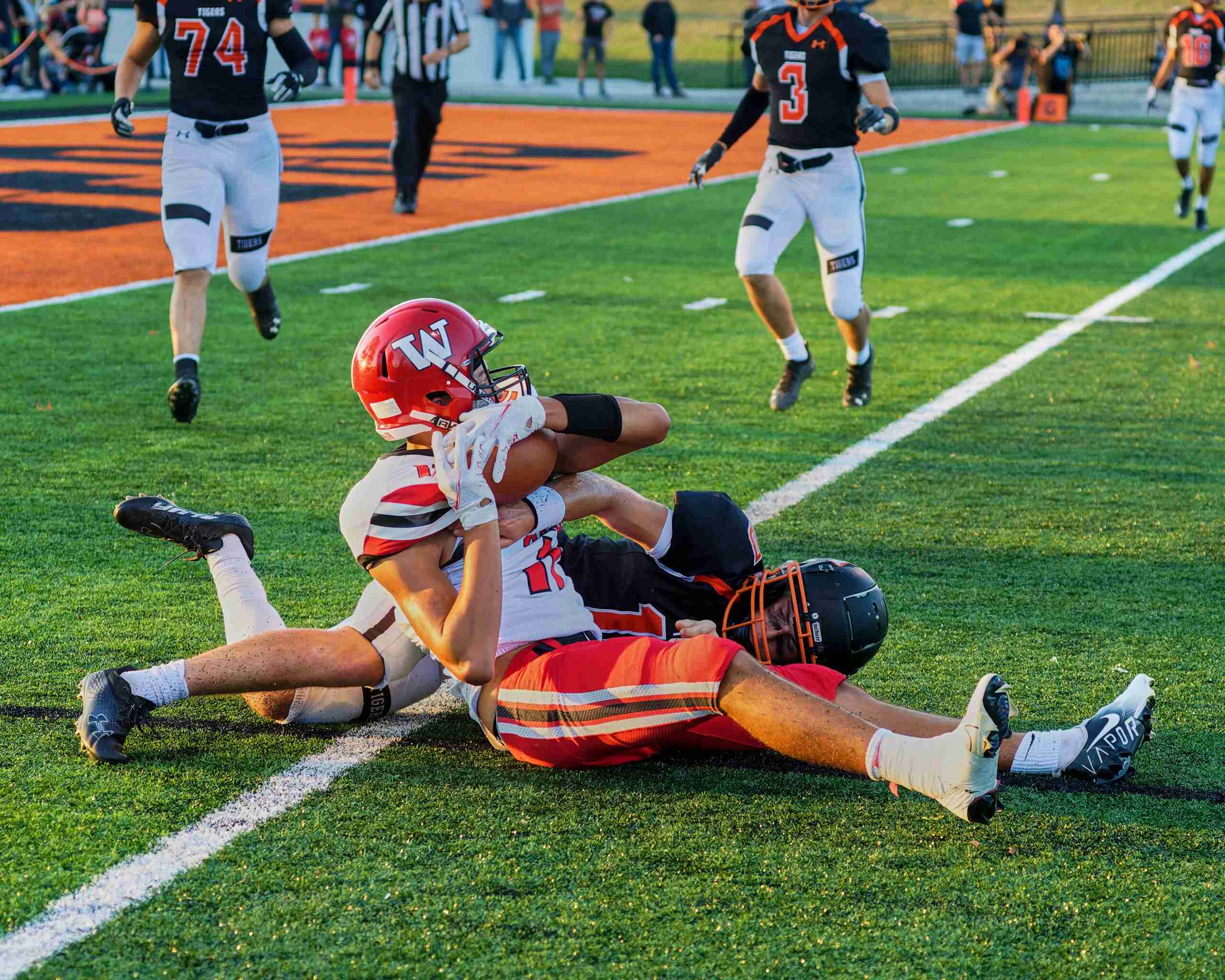 The Tiger’s running game was the story of the night as they rolled up 355 yards on the ground topped by Moore with 139 yards on 15 carries, Zeiter had 16 totes for 98 yards, and Orr carried 20 times for 91 yards.
