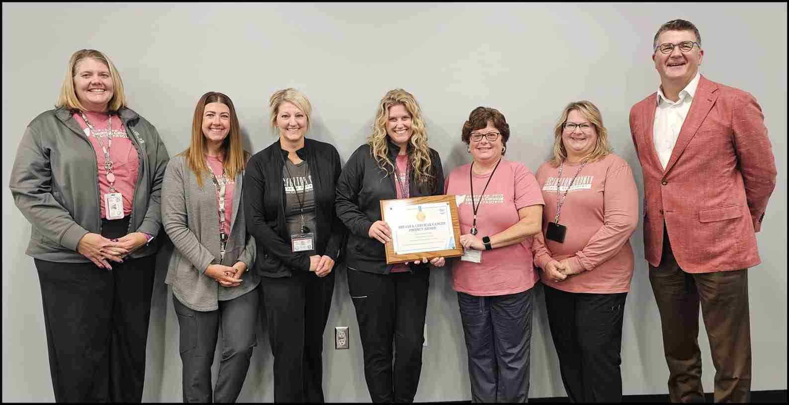 Pictured above is the BCCP staff and Fulton County Health District Board President from left to right: BCCP Director Robyn Newberry, Christa Bickel, Tiffany Nofziger, Sara Salaz, Anne Taylor, Jill Precht and Dr. Kenton Kamp. Not pictured, Debrah Boger, Tiffany Shay and Becky Schermond.
