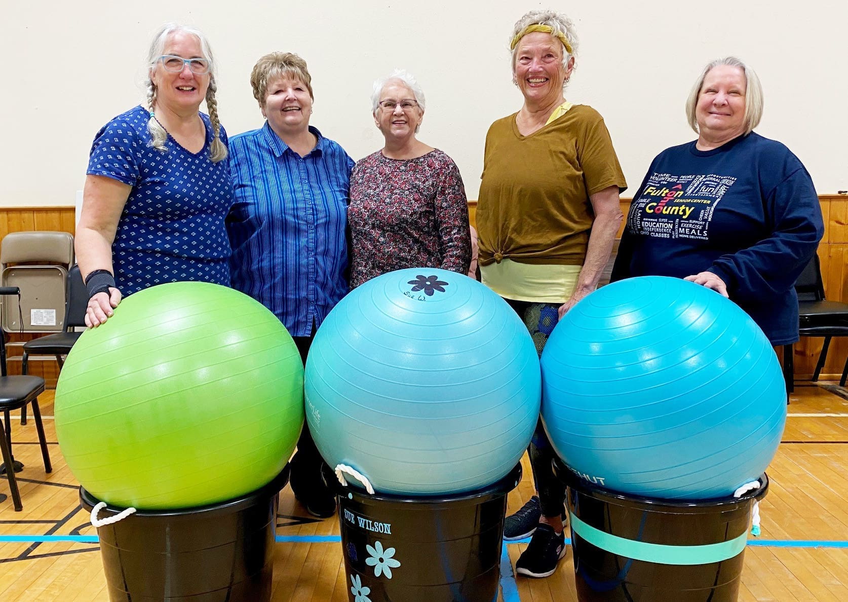 Pictured left to right are 2024 April Wauseon Golden Cardio Drumming Drummers – Sue Bruner, Sue Wilson, Sue Gillen, Susan Clark and Sue Slawinski.