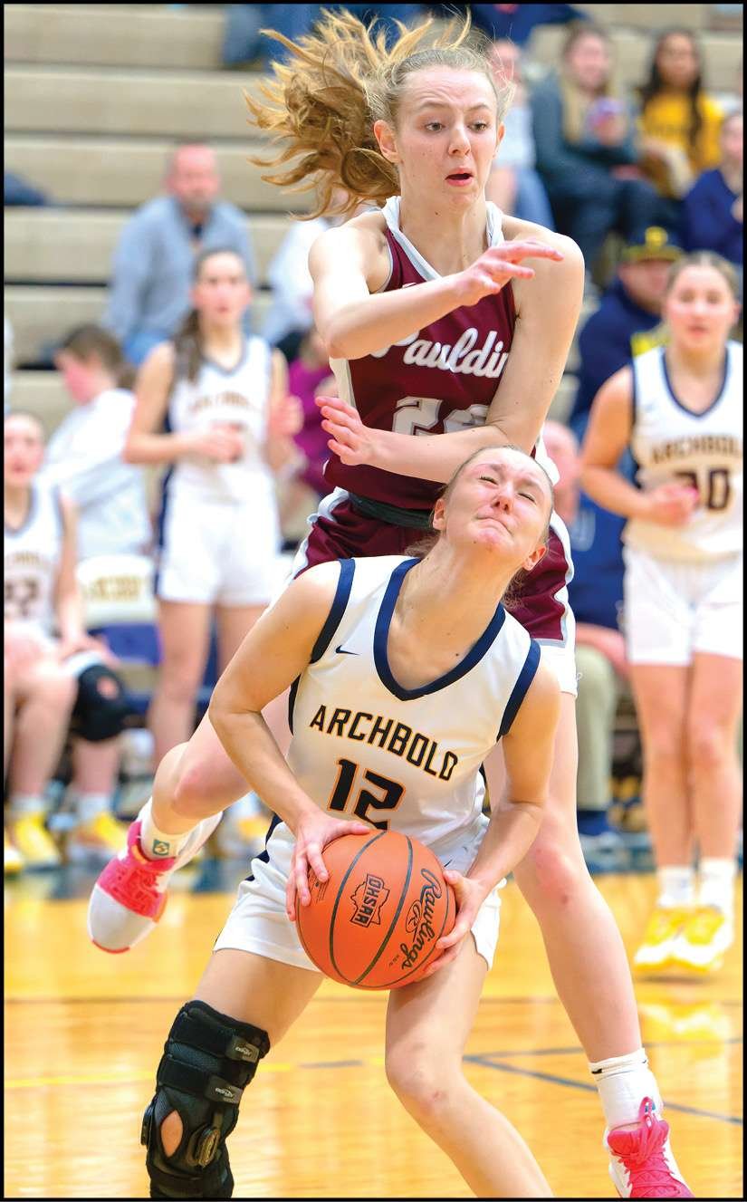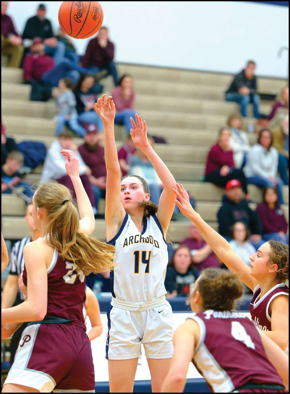 SECTIONAL FINAL … Archbold junior Miley Gericke puts up a jumper in the second half of the Bluestreaks sectional final loss to Paulding. Gericke led Archbold with 12 points.