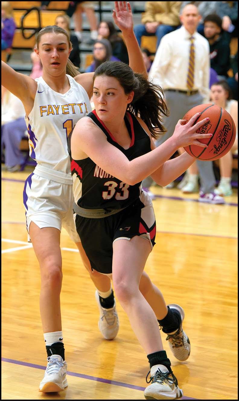 LAYUP … Fayette’s Addison Schang goes up for two of her 12 points in a 49-37 win over North Central. VIEW ALL PHOTOS OF THIS CONTEST FOR FREE AT WWW.THEVILLAGEREPORTER.COM