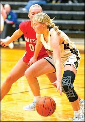 UNDER PRESSURE … Olivia Miller brings the ball up the floor after grabbing a rebound for Pettisville during their nonleague contest with Wauseon.